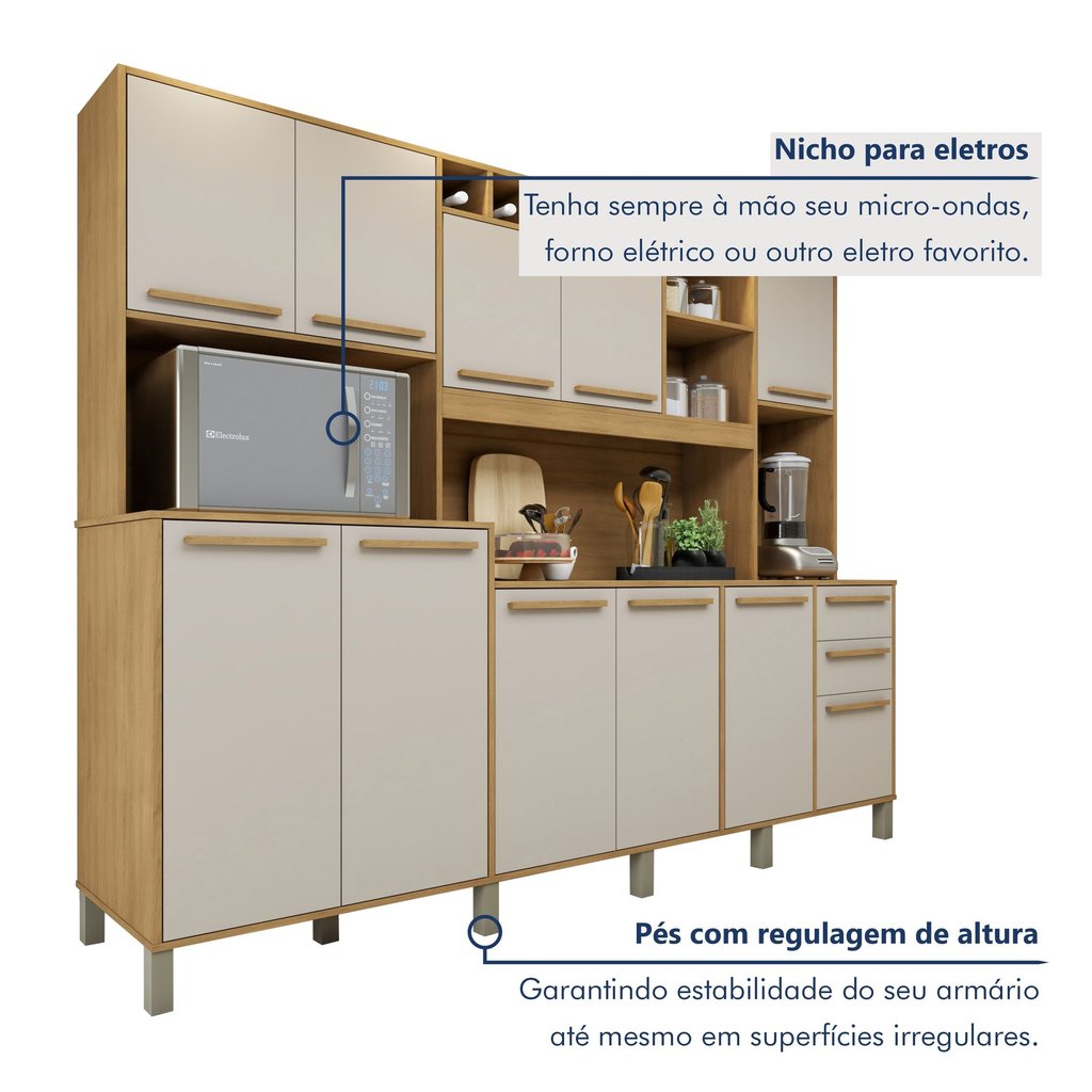 Armário de Cozinha 11 Portas 2 Gavetas Agata Cinamomo/Off White