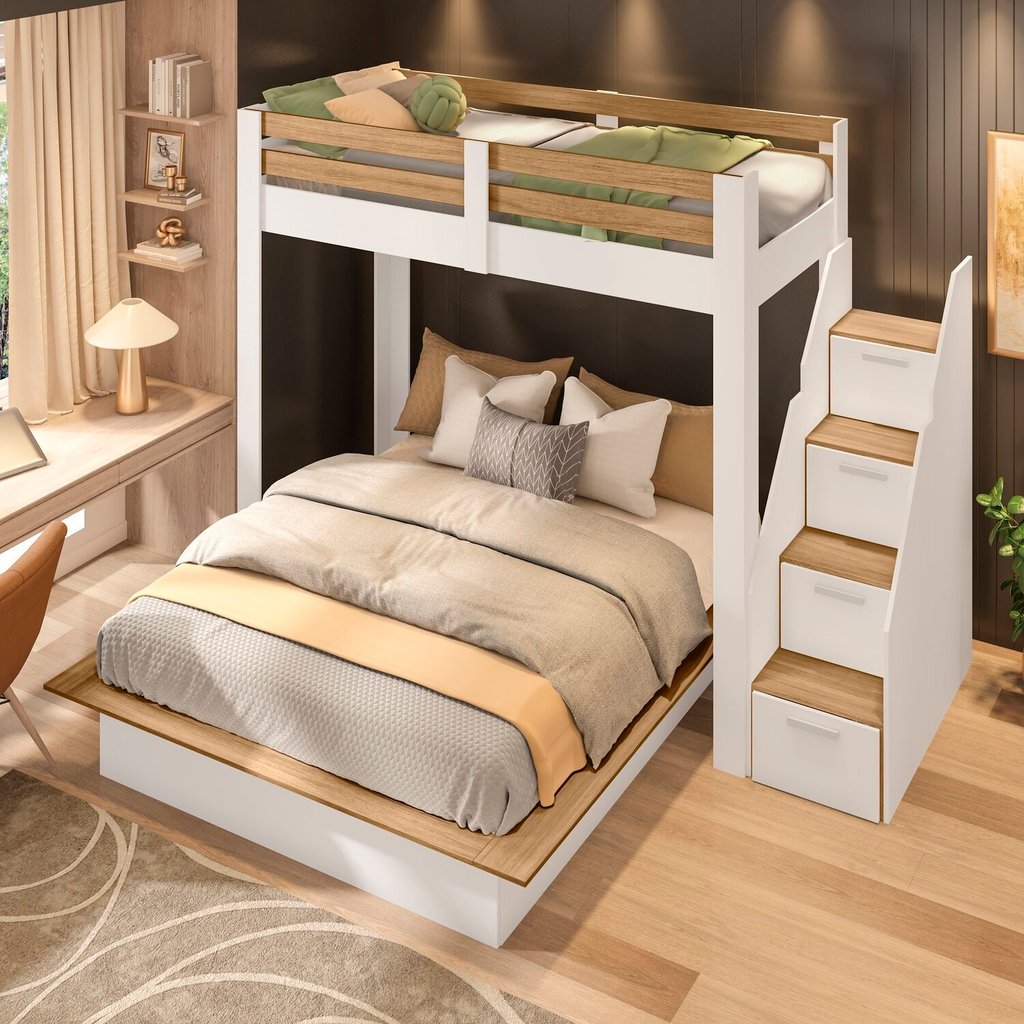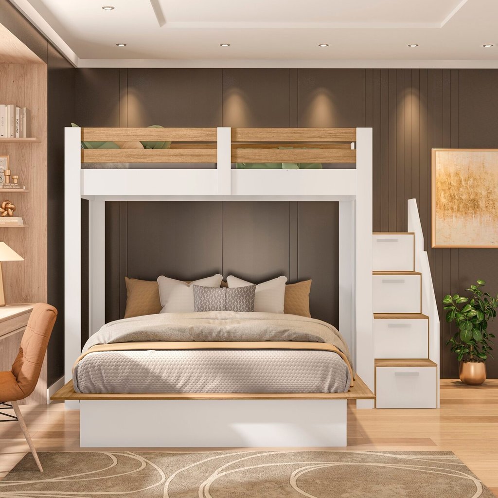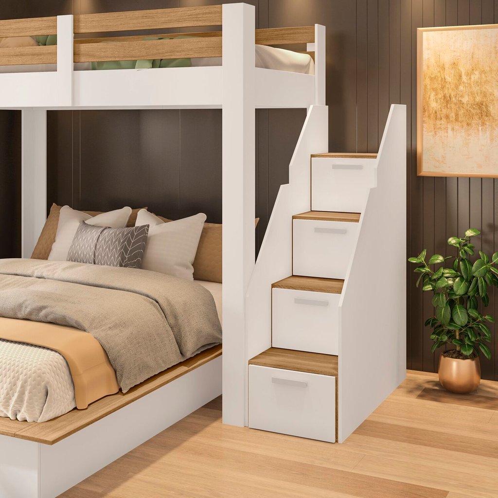 Beliche Family Adulto com Cama Casal Star Plus Casatema MadeiraOriginals Branco/Amadeirado