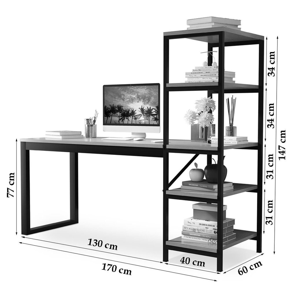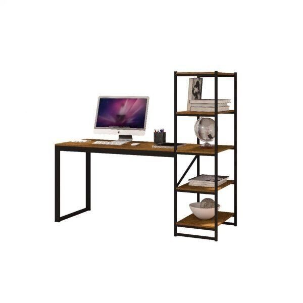 Escrivaninha Escritório Industrial Estante 4 Prateleiras 170cm Estrutura Aço MDP Preto Canela Innovare Preto/Canela