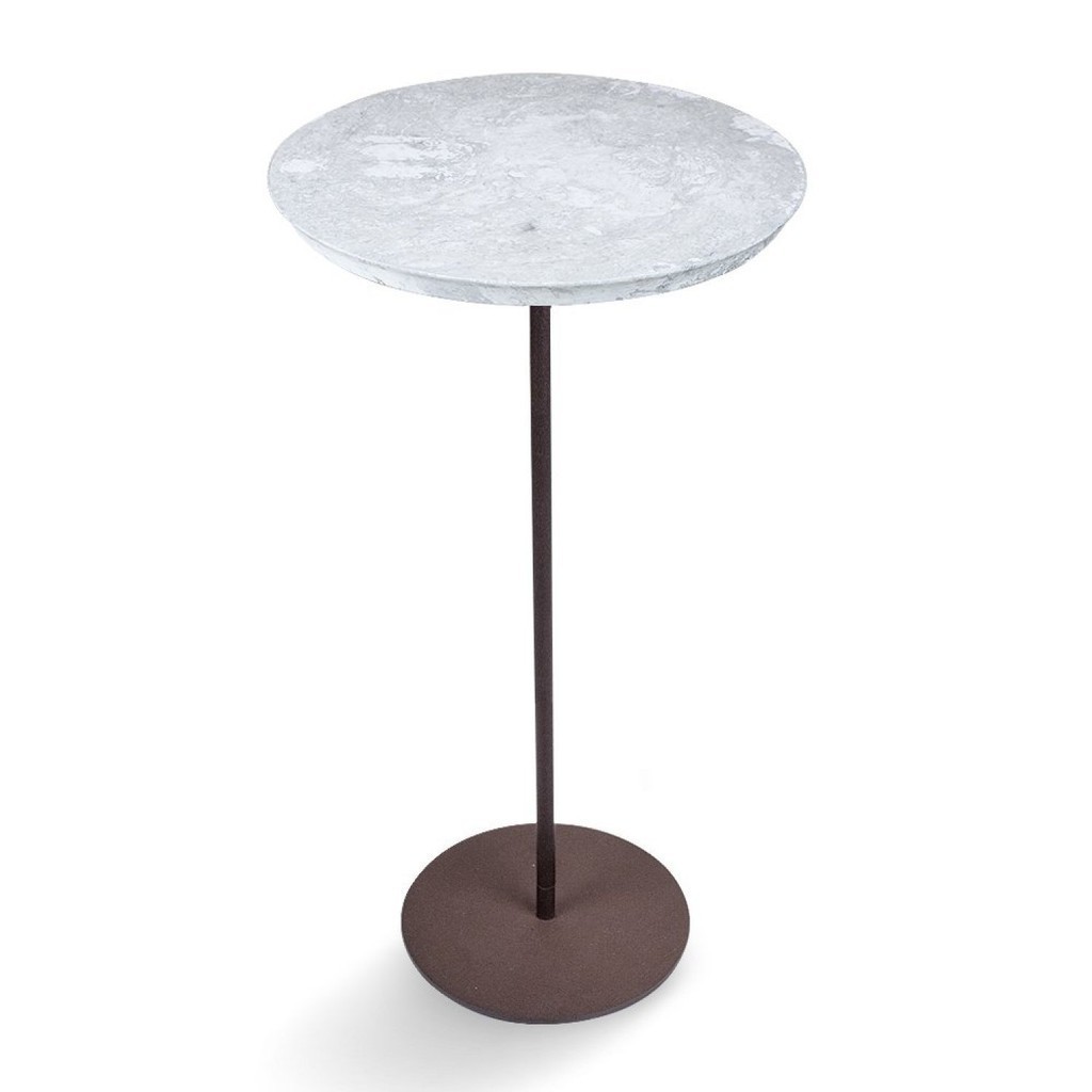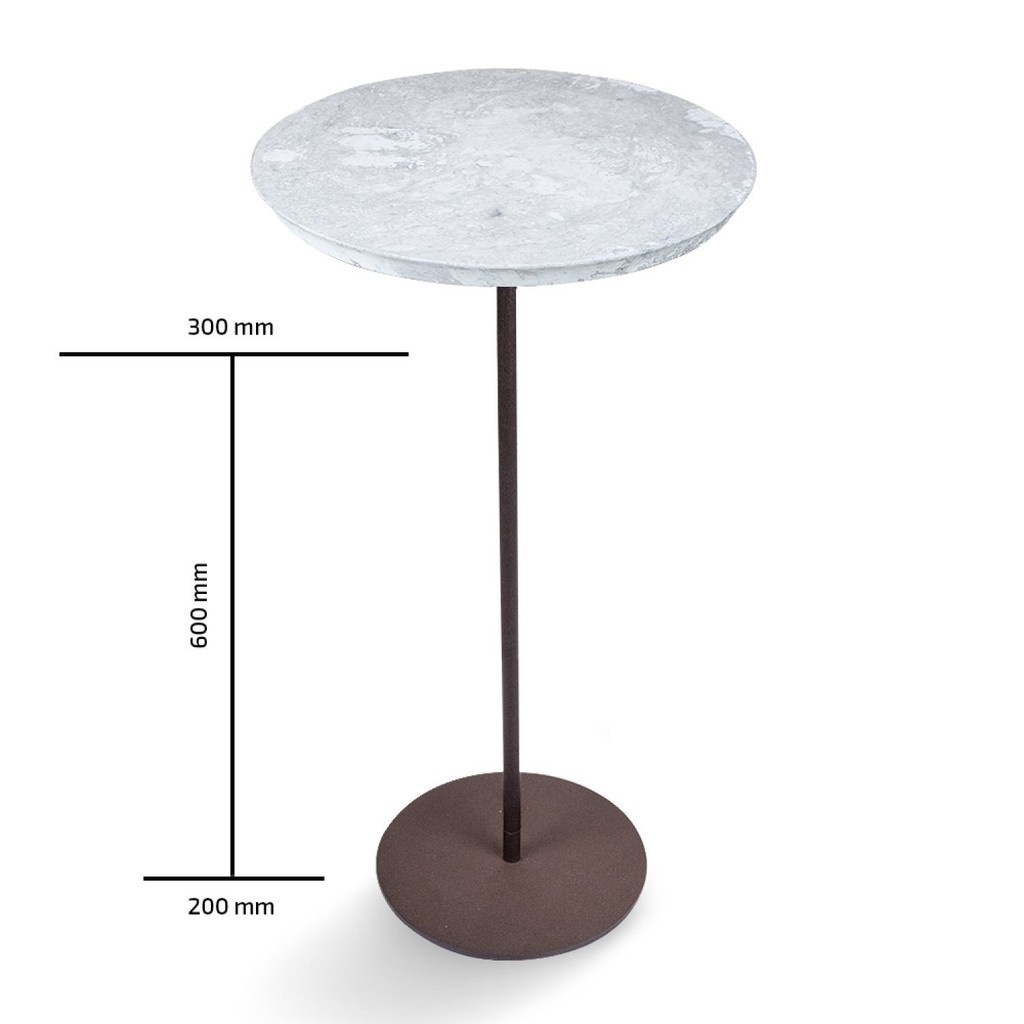 Mesa Lateral NORINA - ALTA, tampo redondo Imerso e base Aço Corten.