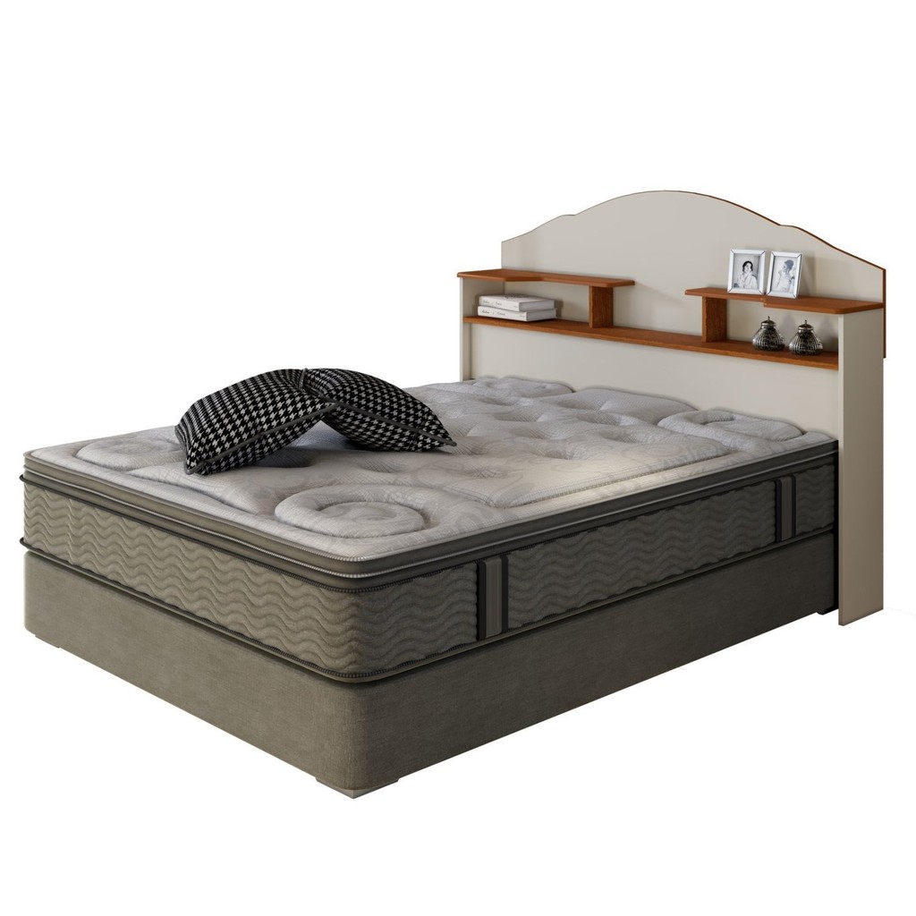 Cabeceira para Cama Box Casal com 2 Nichos Evelyn Off White/Canela