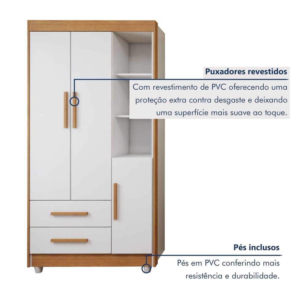Quarto de Bebê Completo com Cômoda, Mini Berço com Colchão e Guarda Roupas Lila Amadeirado/Branco