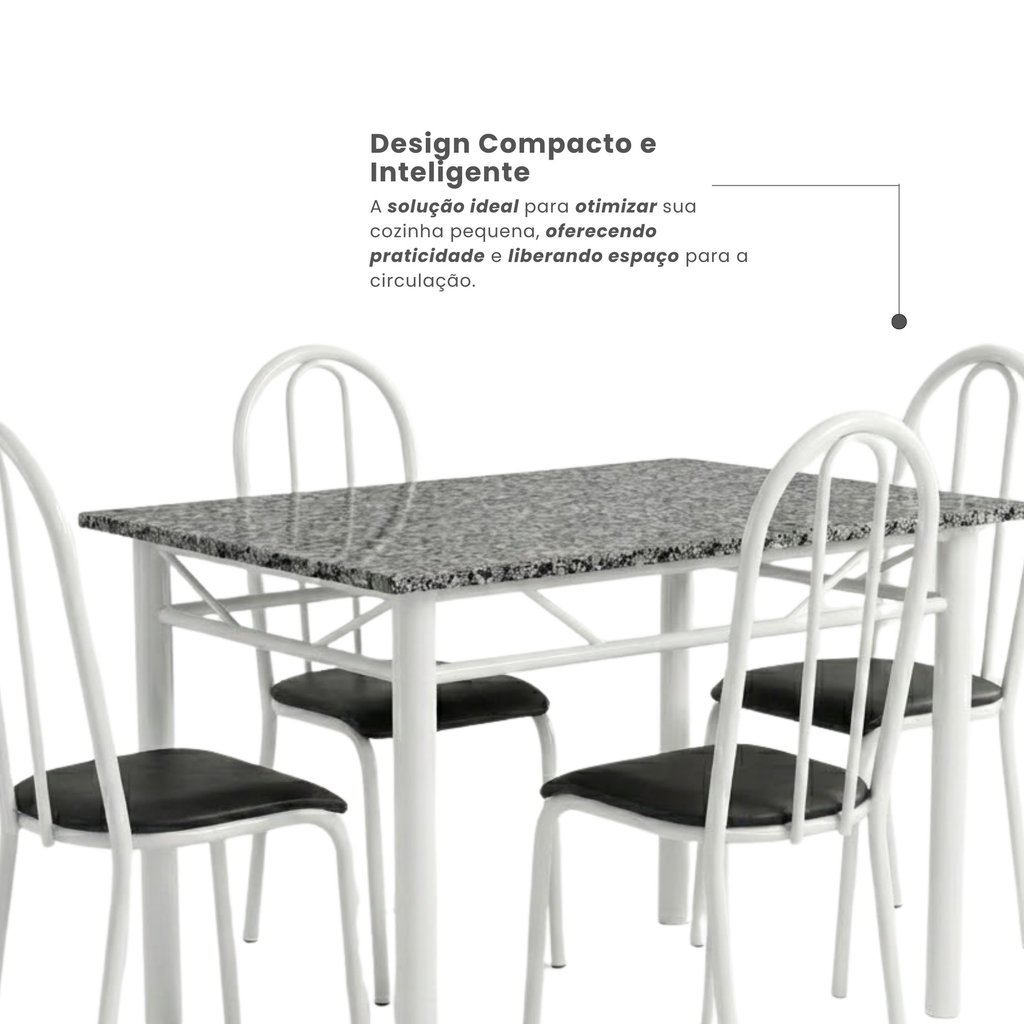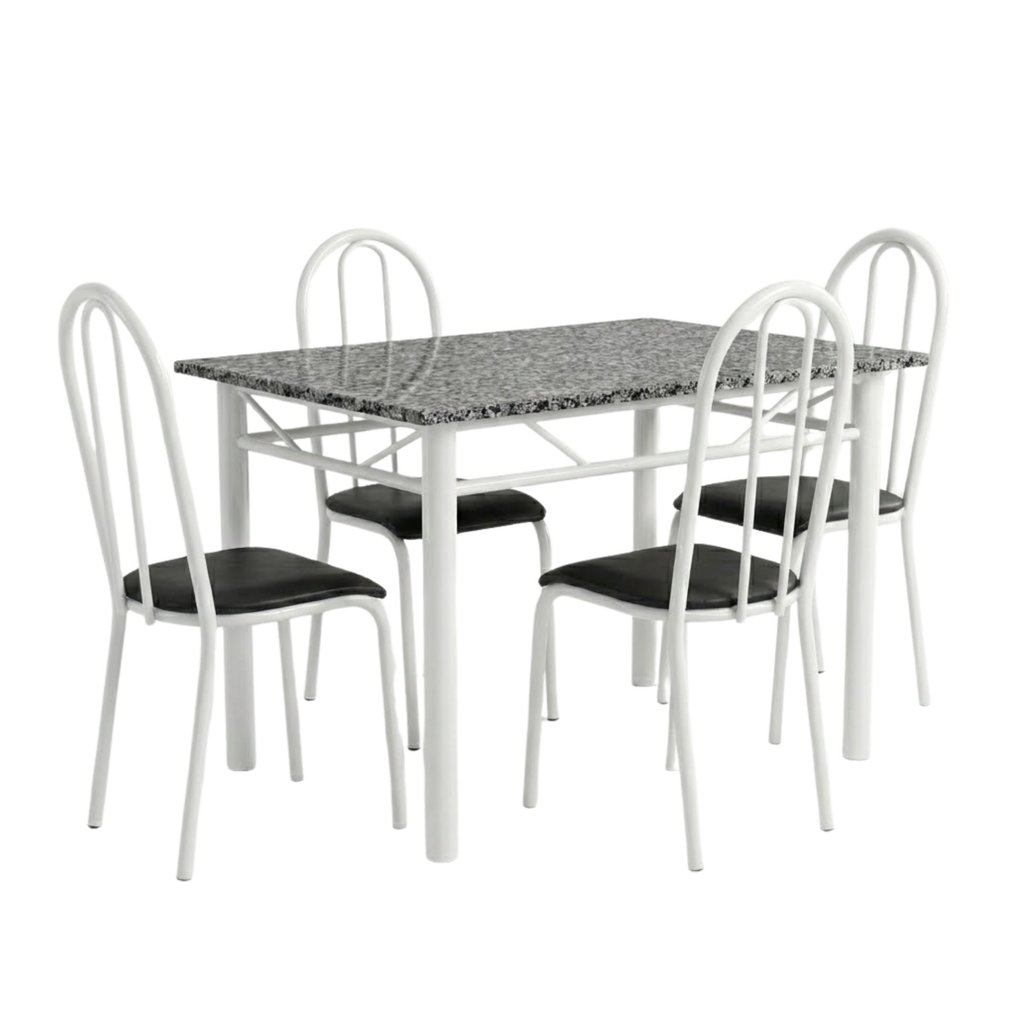 Conjunto Mesa de Jantar 4 Lugares Retangular em Aço com Tampo em Granito Monique Mescla