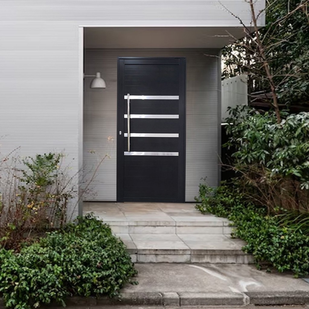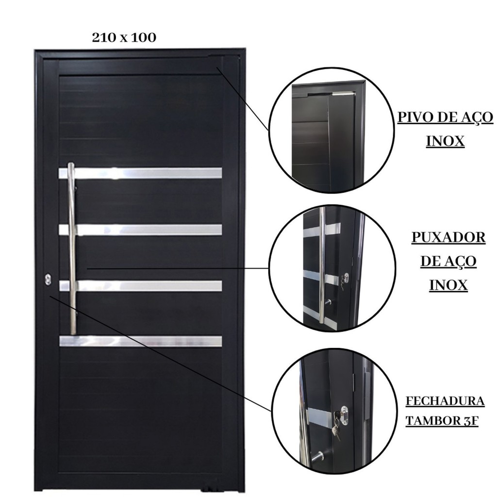 Porta Pivotante de Alumínio 210 x 100cm com Friso 30 Esquadrias Bergamo Abertura Direita