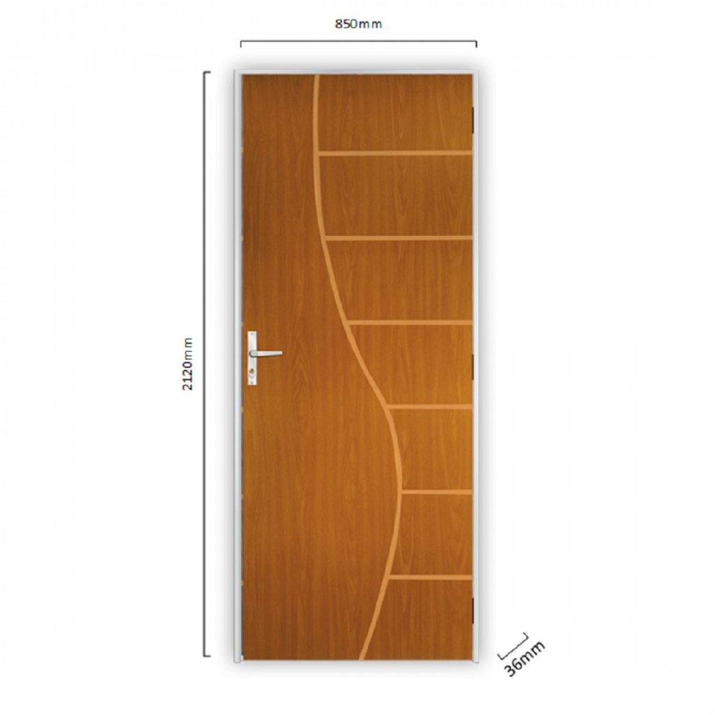 Kit Porta de Madeira Decorada 212x85cm com Batente de Alumínio 3,6cm Cantareira Mgm Abertura Direita Mogno