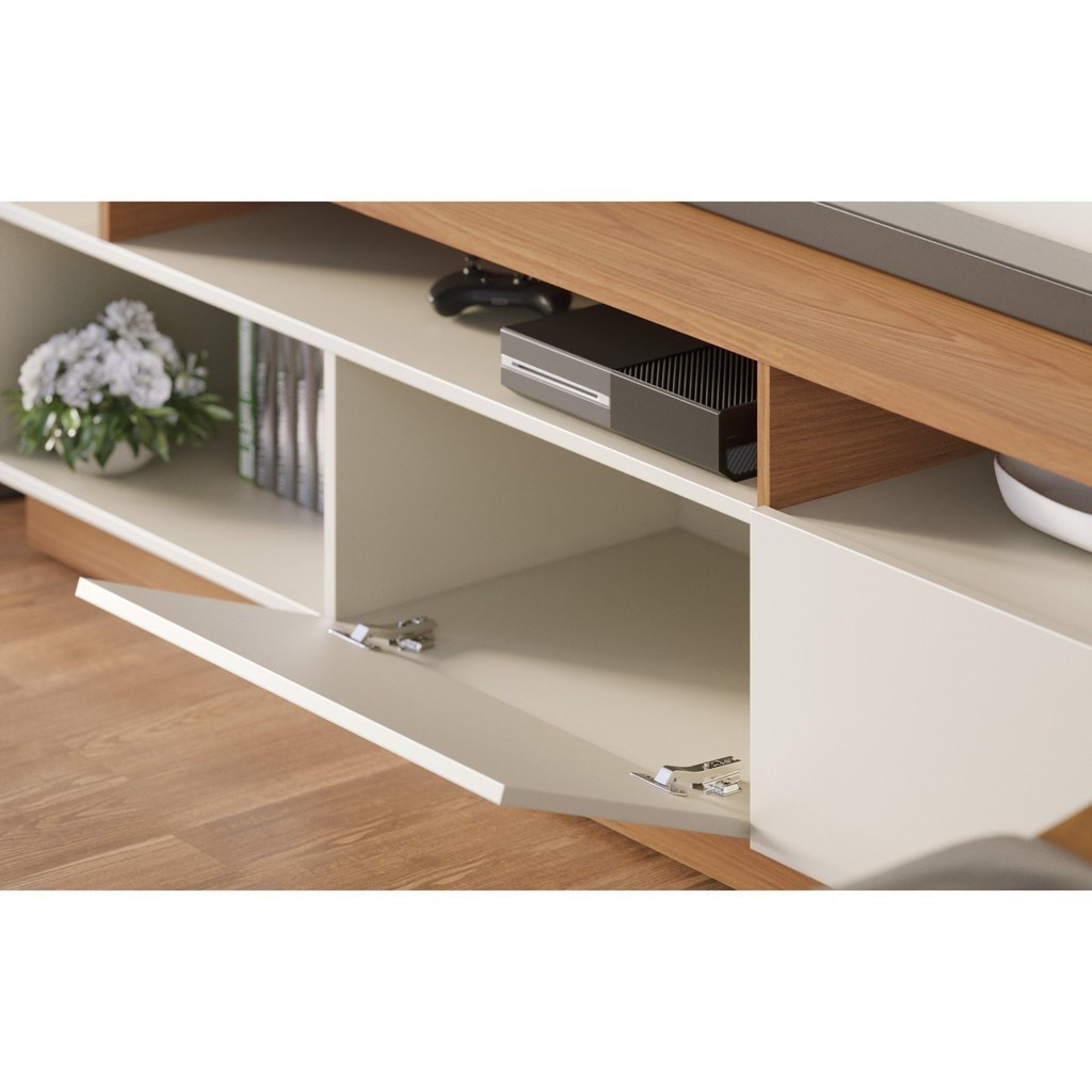 Estante Ripado Home Theater com Led Para TV até 65 Polegadas 2 Portas Humaitá Colibri Freijó/Off White Matte