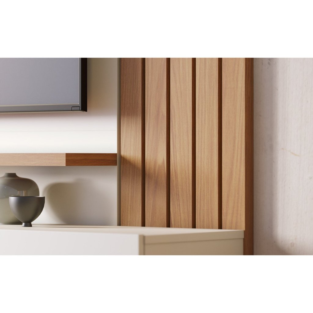 Painel para TV até 70 Polegadas 2 Portas Basculantes 2 Prateleiras Juriti Colibri Off White Matte/Freijó
