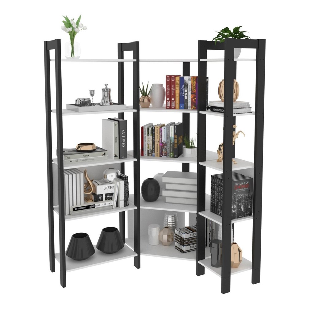 Estante para Livros Multiuso de Canto 1,85x1,33m Haia Yescasa Preto/Branco