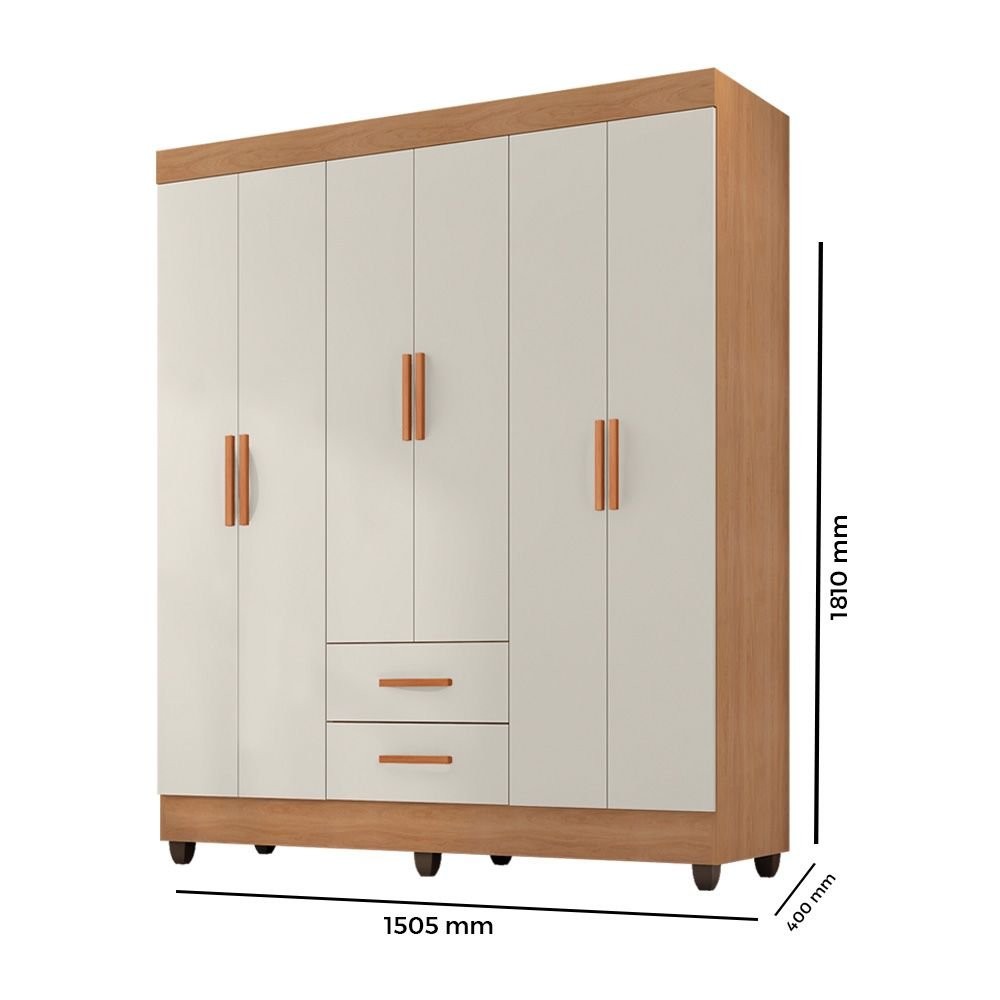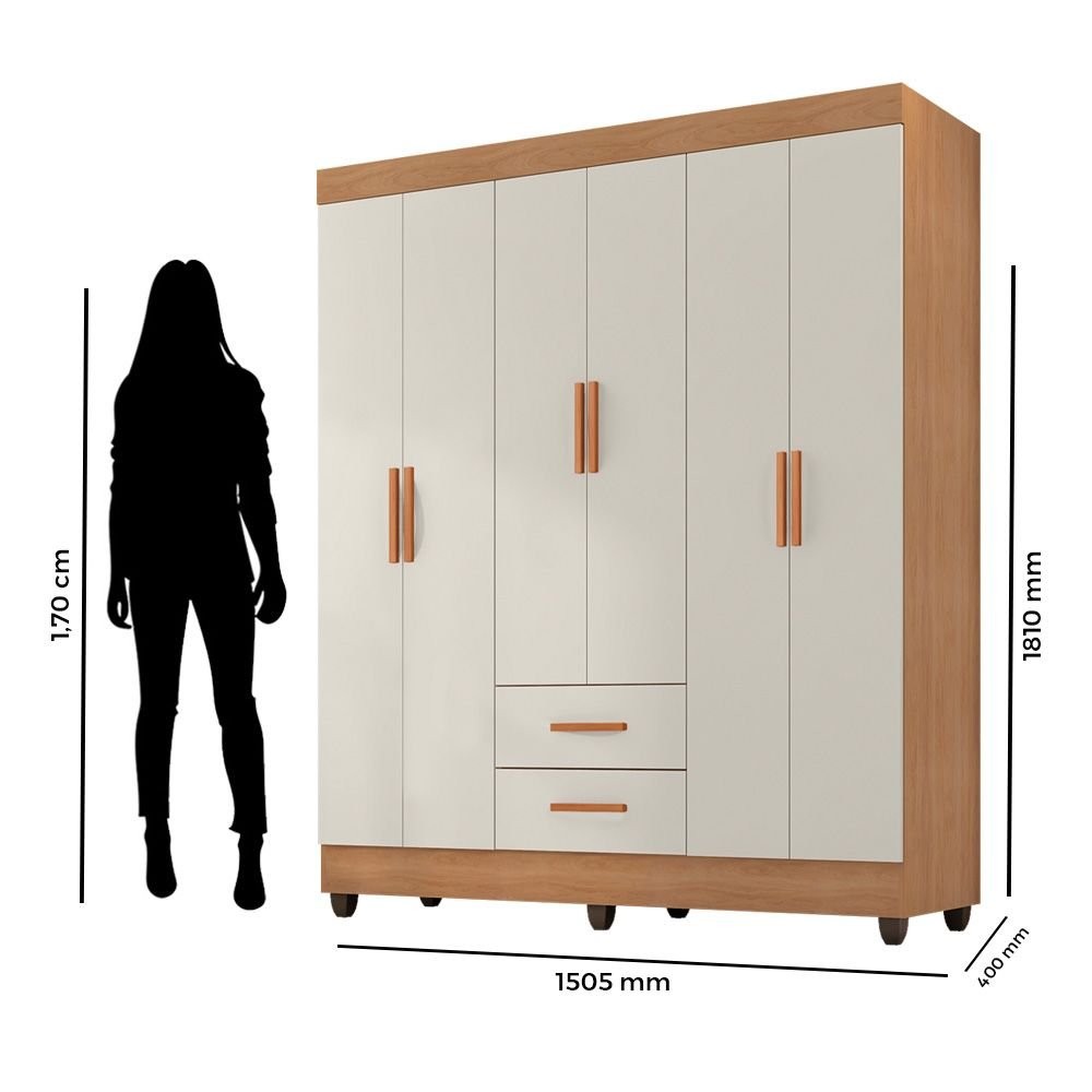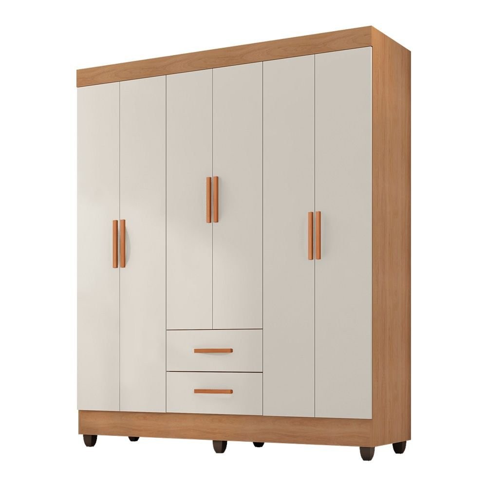 Guarda Roupa Casal 6 Portas 2 Gavetas com Pés Lite Nature/Off White