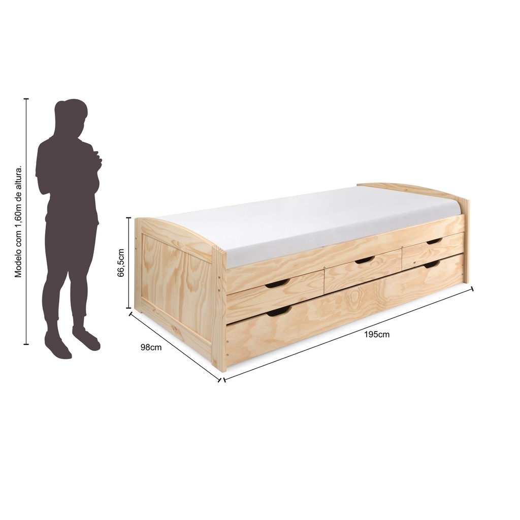 Bicama Solteiro em Madeira Maciça