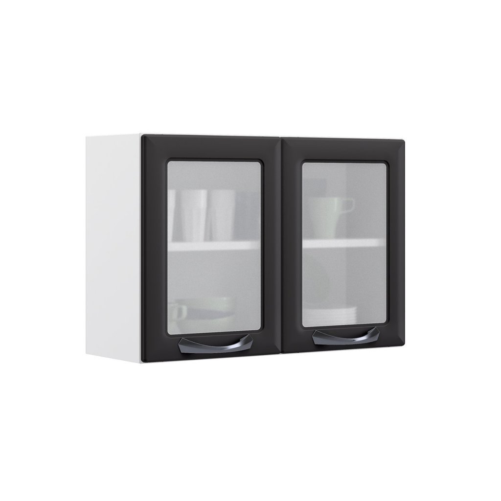 Armário de Cozinha em Aço 2 Portas com Vidro 80cm New Premium Itatiaia Grafite/Branco