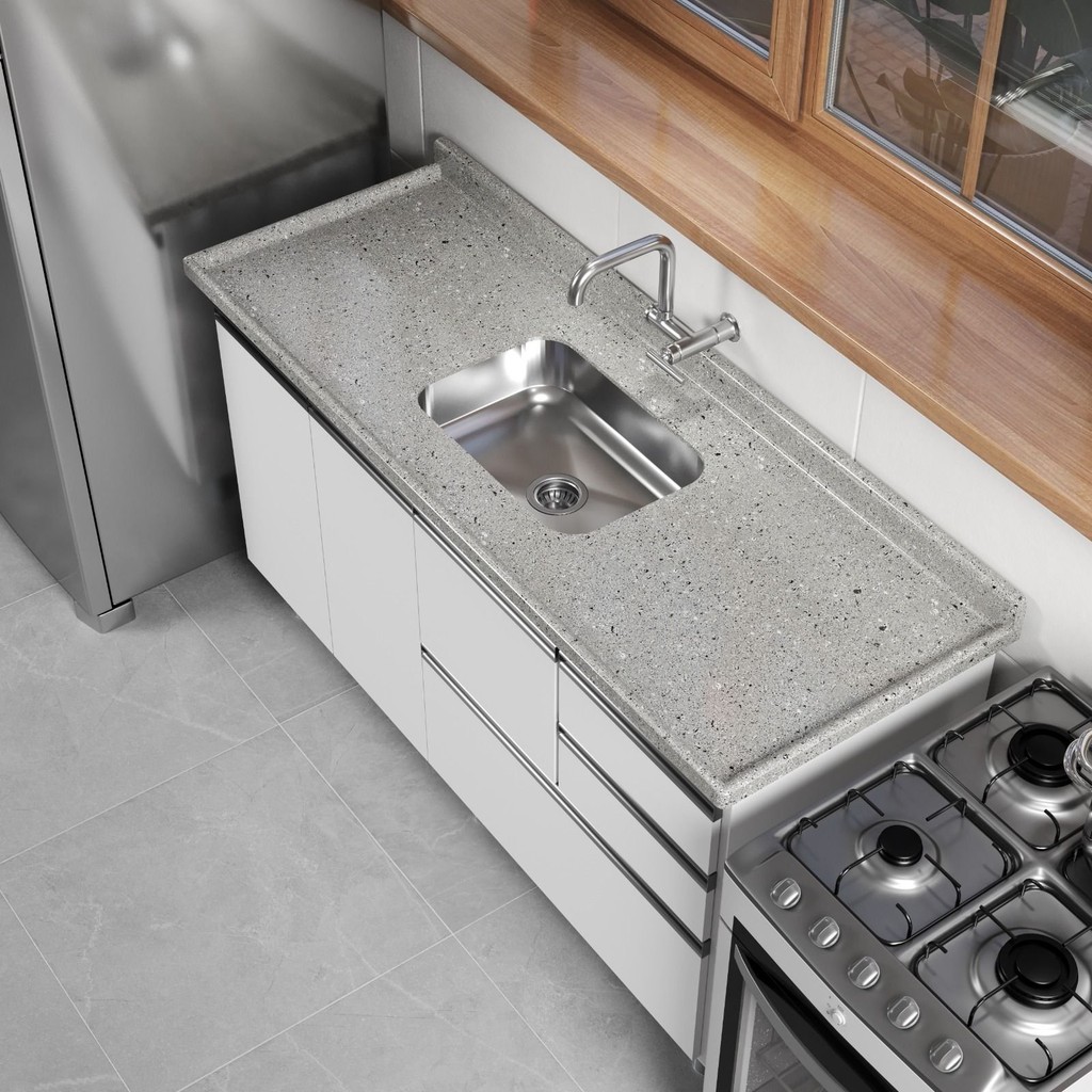 Pia Para Cozinha em Mármore Sintético com Cuba em Aço Inox 180cmx55cm Cinza