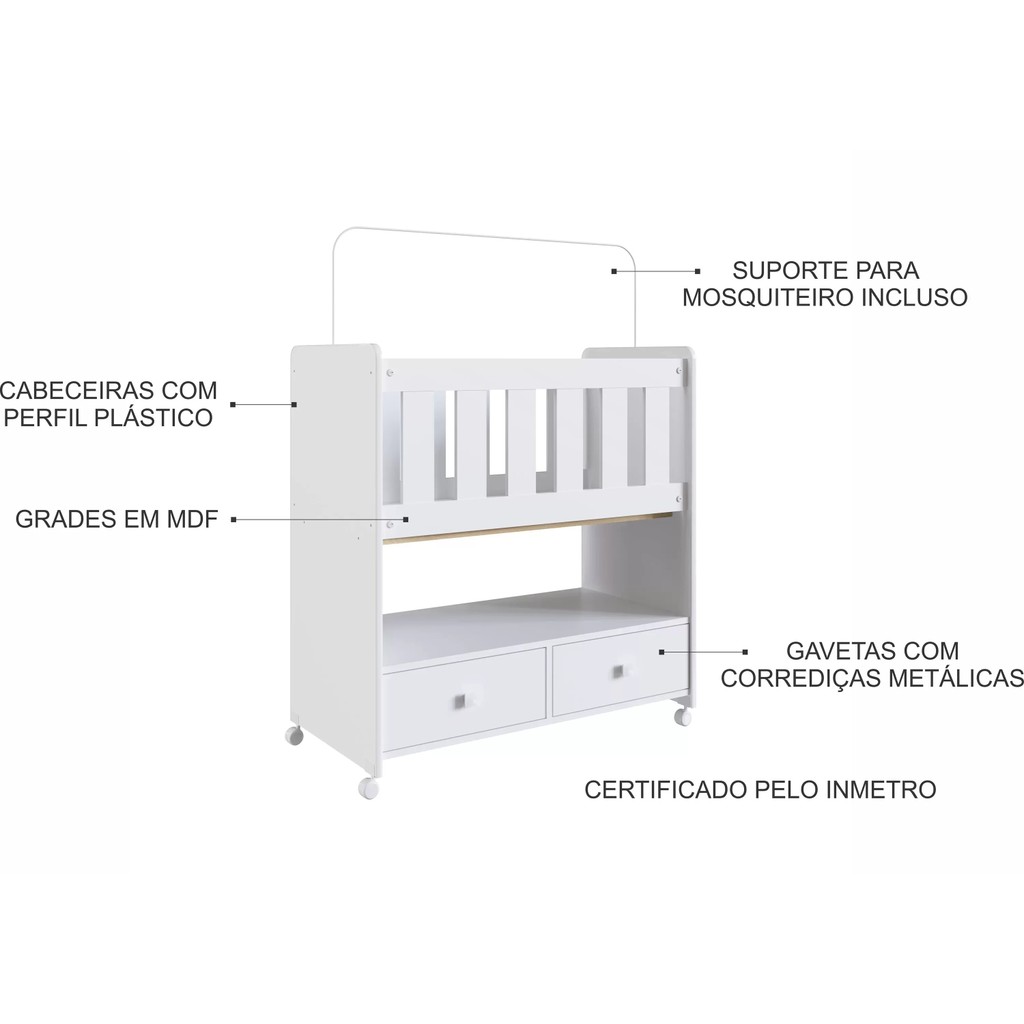 Mini Berço 2 Gavetas com Colchão Moisés Branco