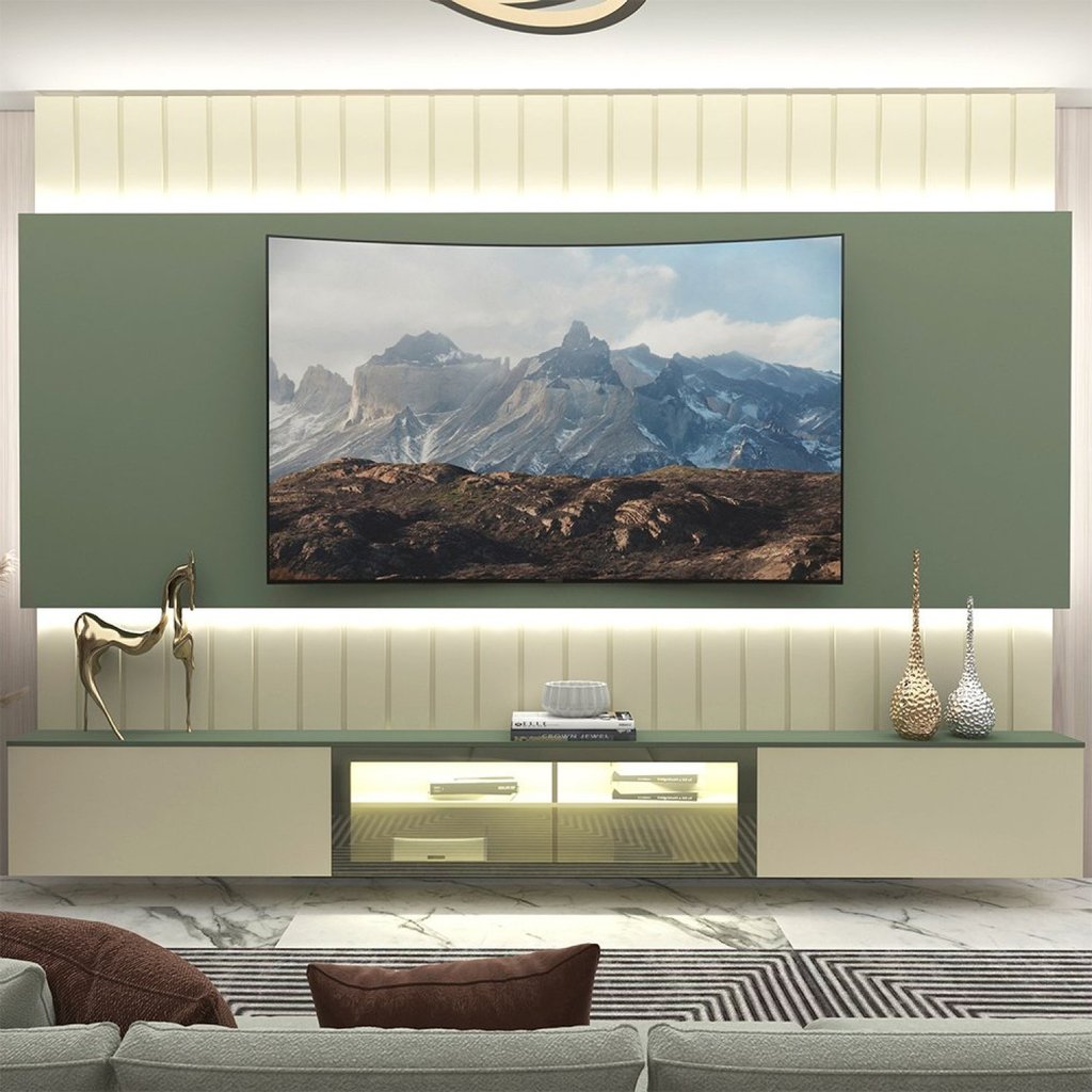 Estante Home para Tv até 115 Polegadas com Led 260cm Soberano Reflecta 100% MDF Off White/Verde Bellagio