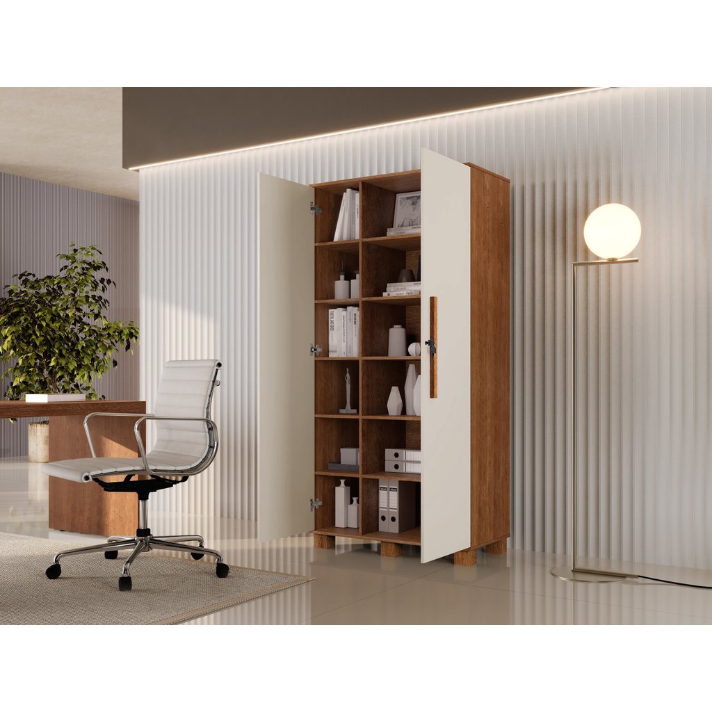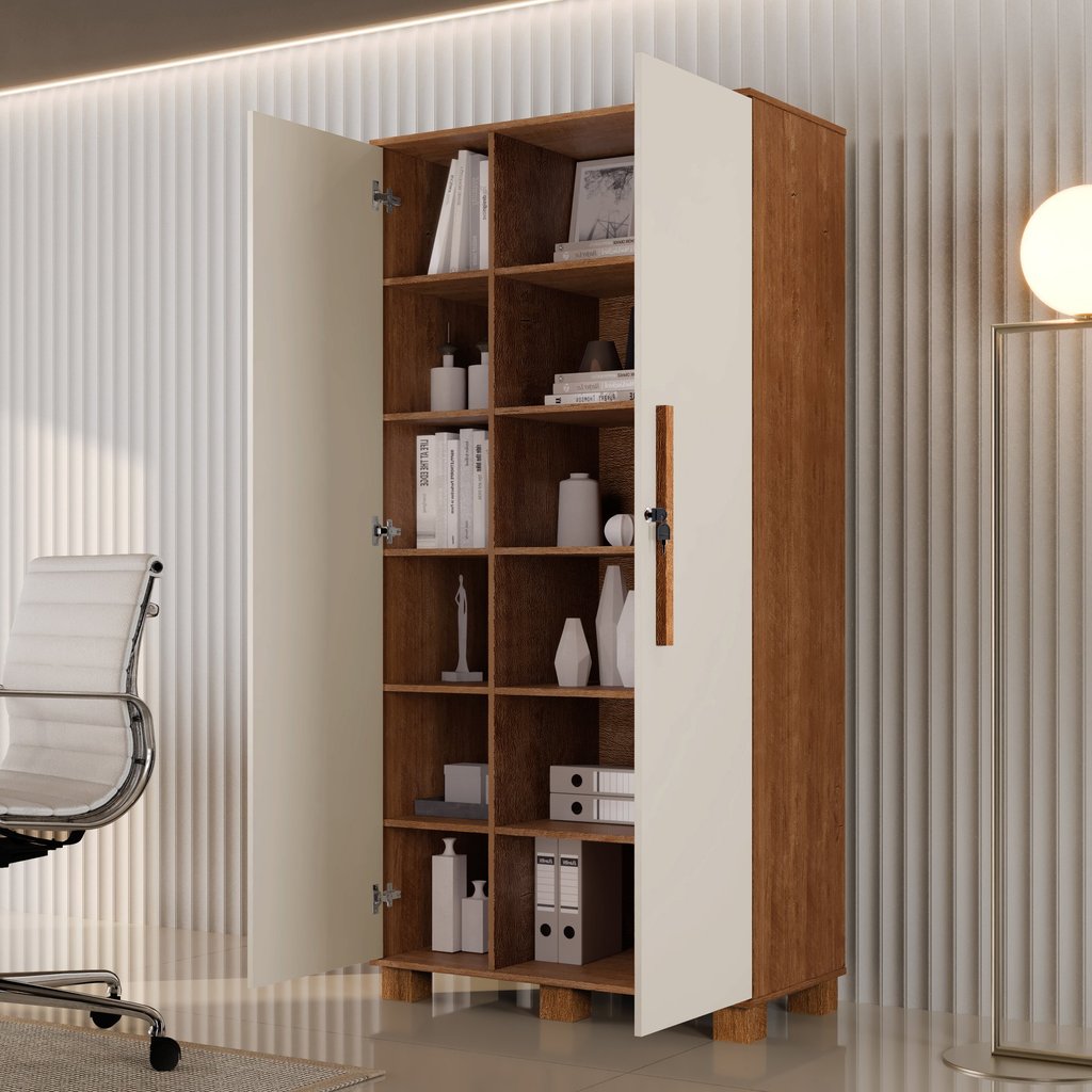 Armário para Escritório Multiuso 2 Portas com Chave 100% MDF Dacar Canela/Offwhite