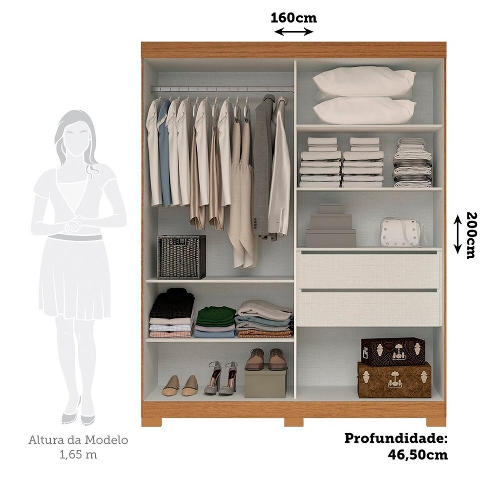 Guarda-roupa Casal 160cm 2 Portas de Correr Flex Color 100% Mdf Boldina Espresso Móveis Cinamomo/Off White