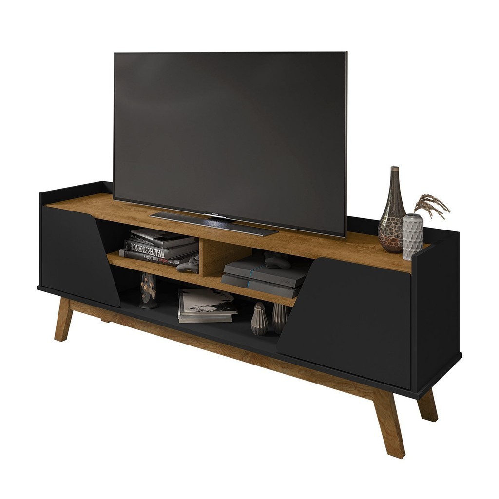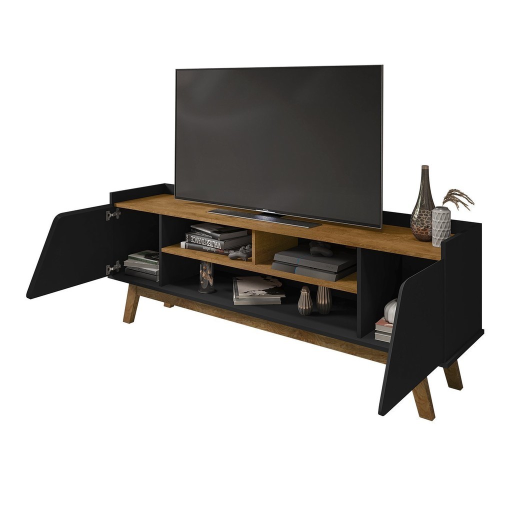 Rack para TV até 65 Polegadas Turim 2 Portas 1 Prateleira Preto Fosco/Naturalle