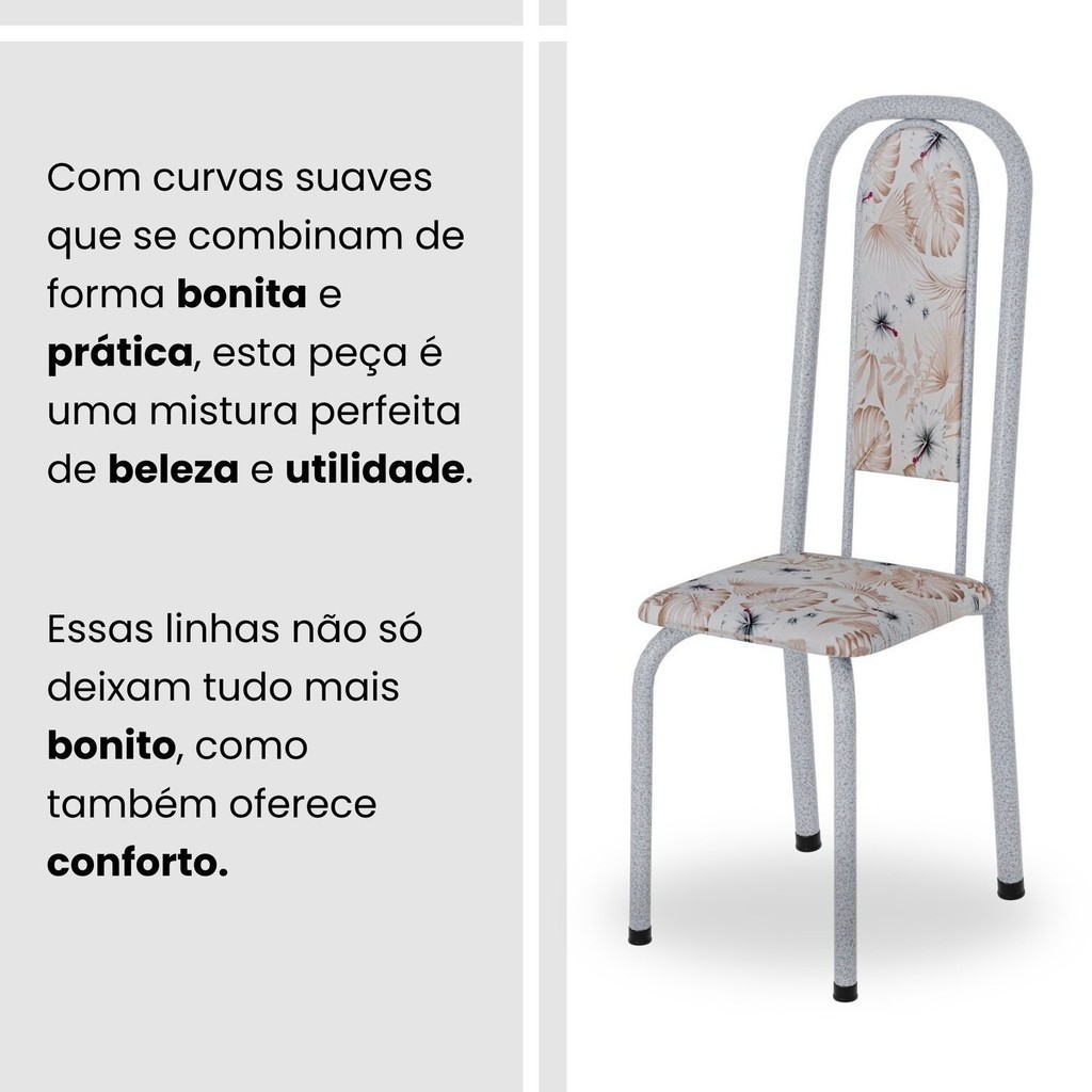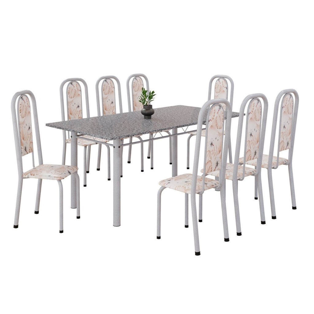 Conjunto de Mesa Retangular 180x75cm Tampo Granito Ocre 8 Cadeiras Lavínea Botanic Bege/Mart Pérola