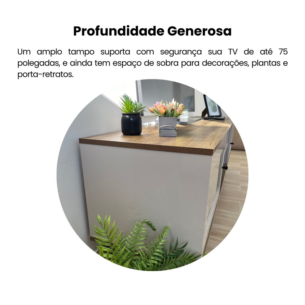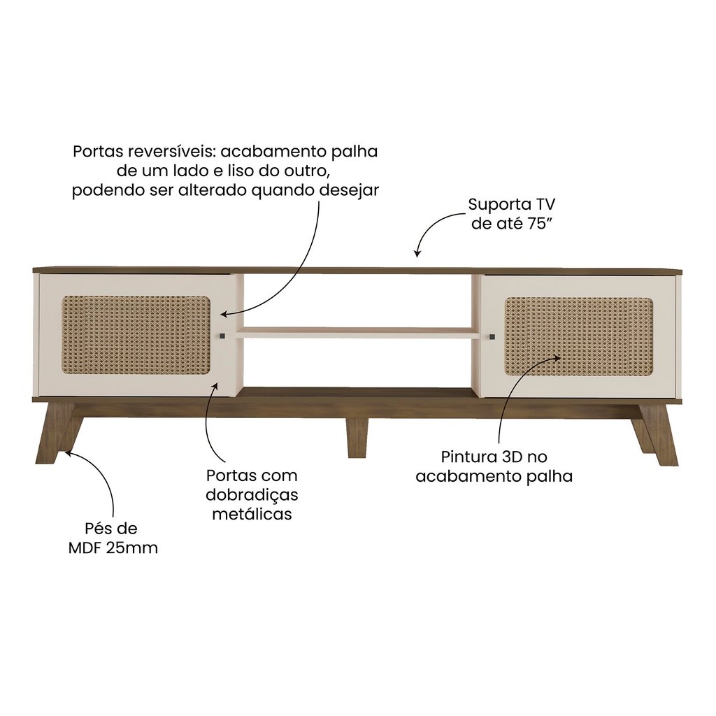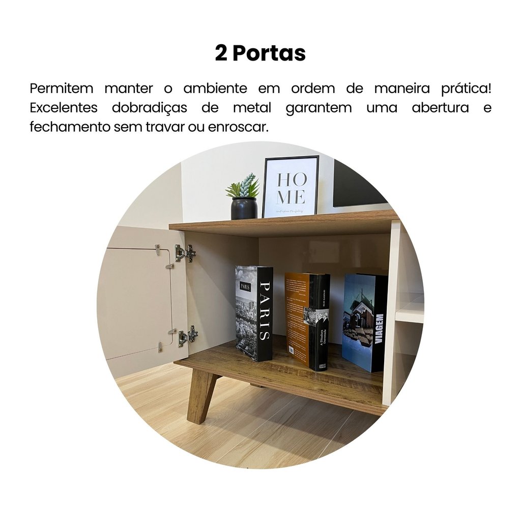 Rack para TV até 75 Polegadas 2 Portas com Pés Retro Charlotte Pinho/Off White
