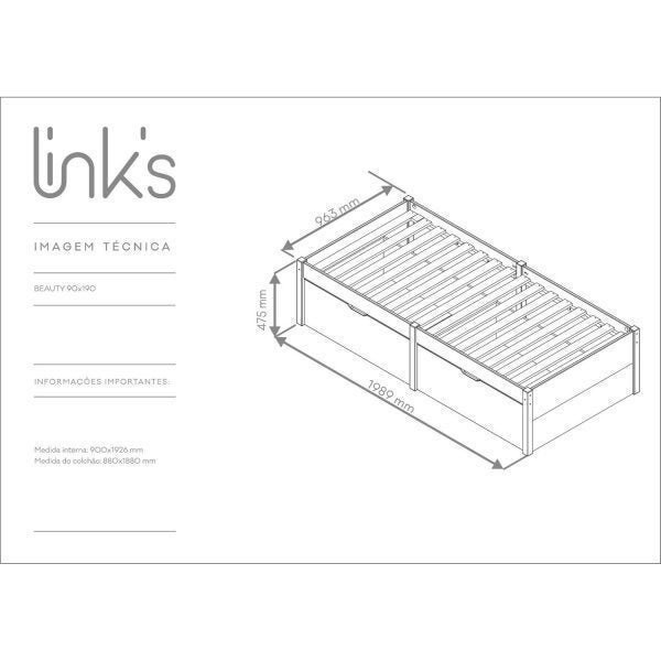 Cama Solteiro 2 Gavetas Madeira Maciça Beauty Amendoa