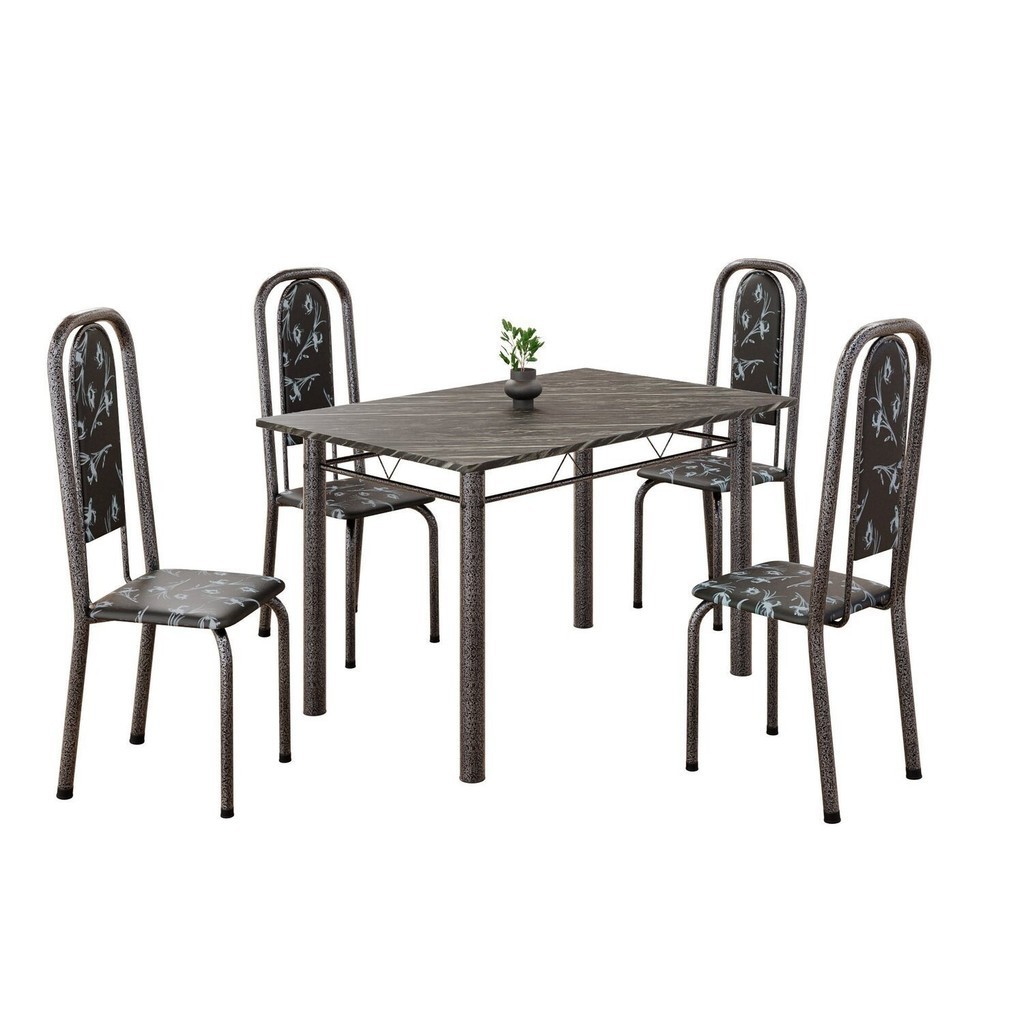 Conjunto de Mesa Retangular 120x75cm Tampo Ardósia Indiano 4 Cadeiras Lavínea Preto Floral/Mart Prata