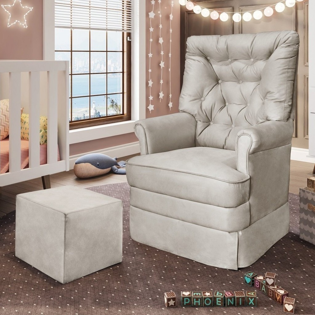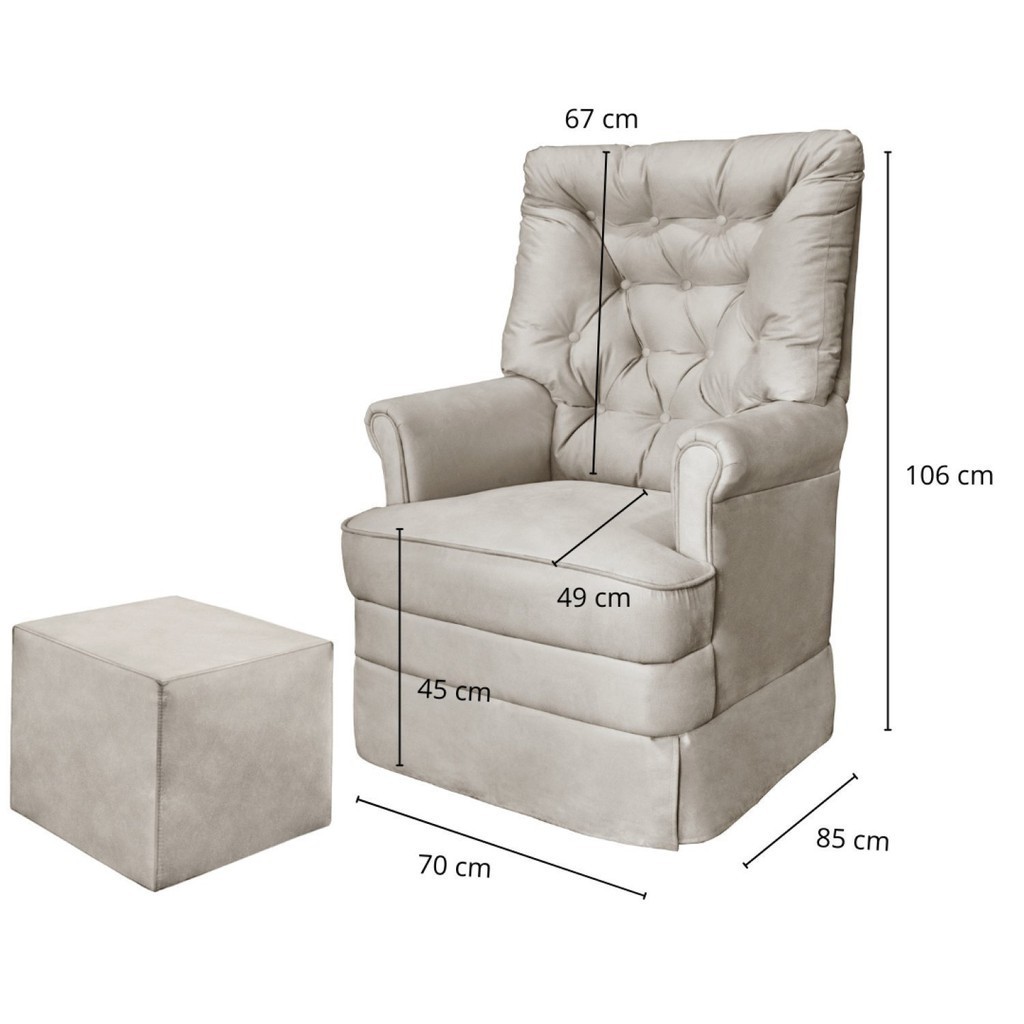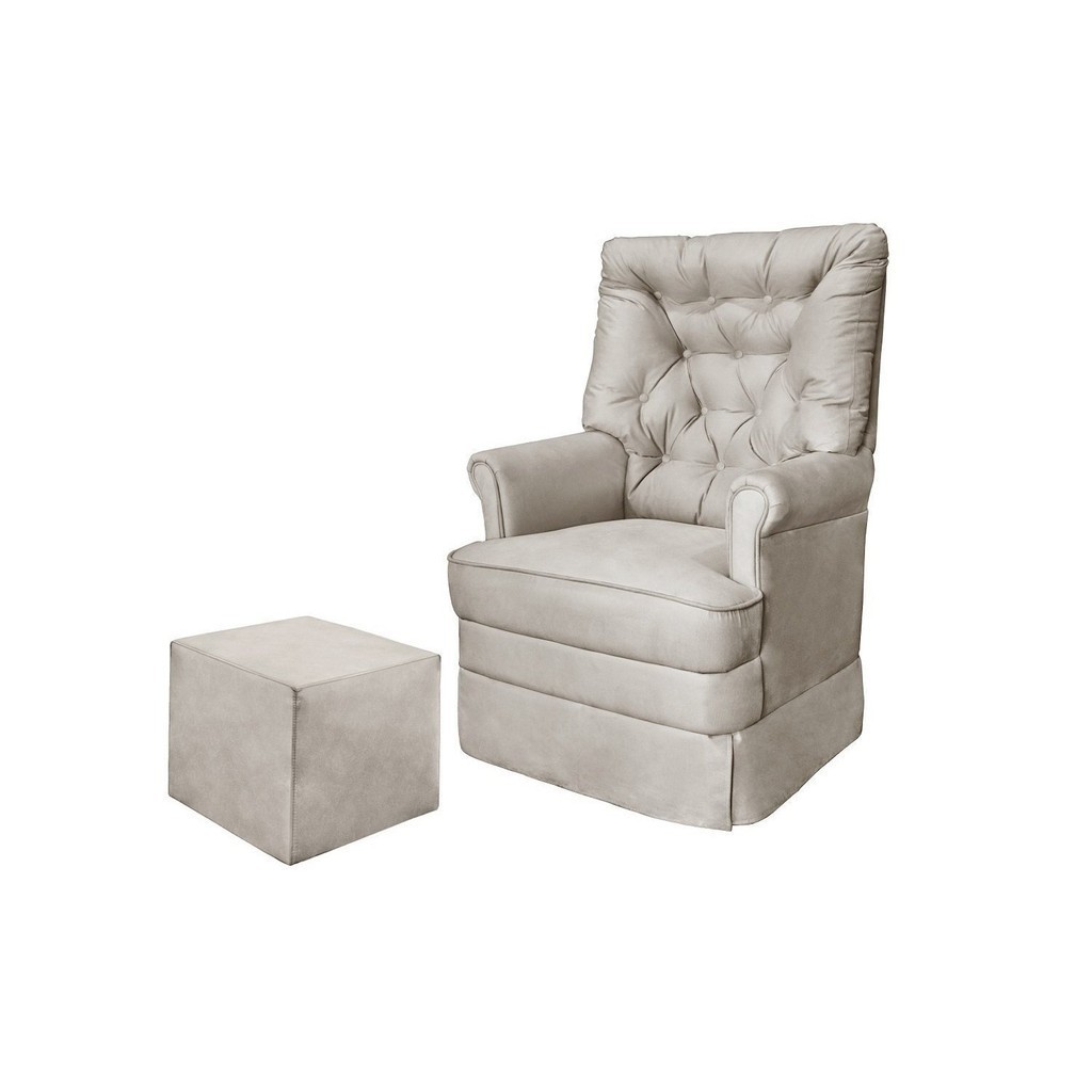 Poltrona para Amamentação Suede Balanço e Puff Alana