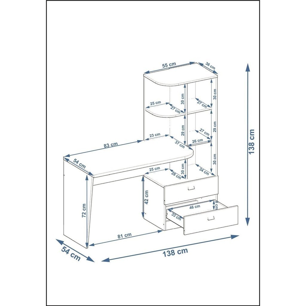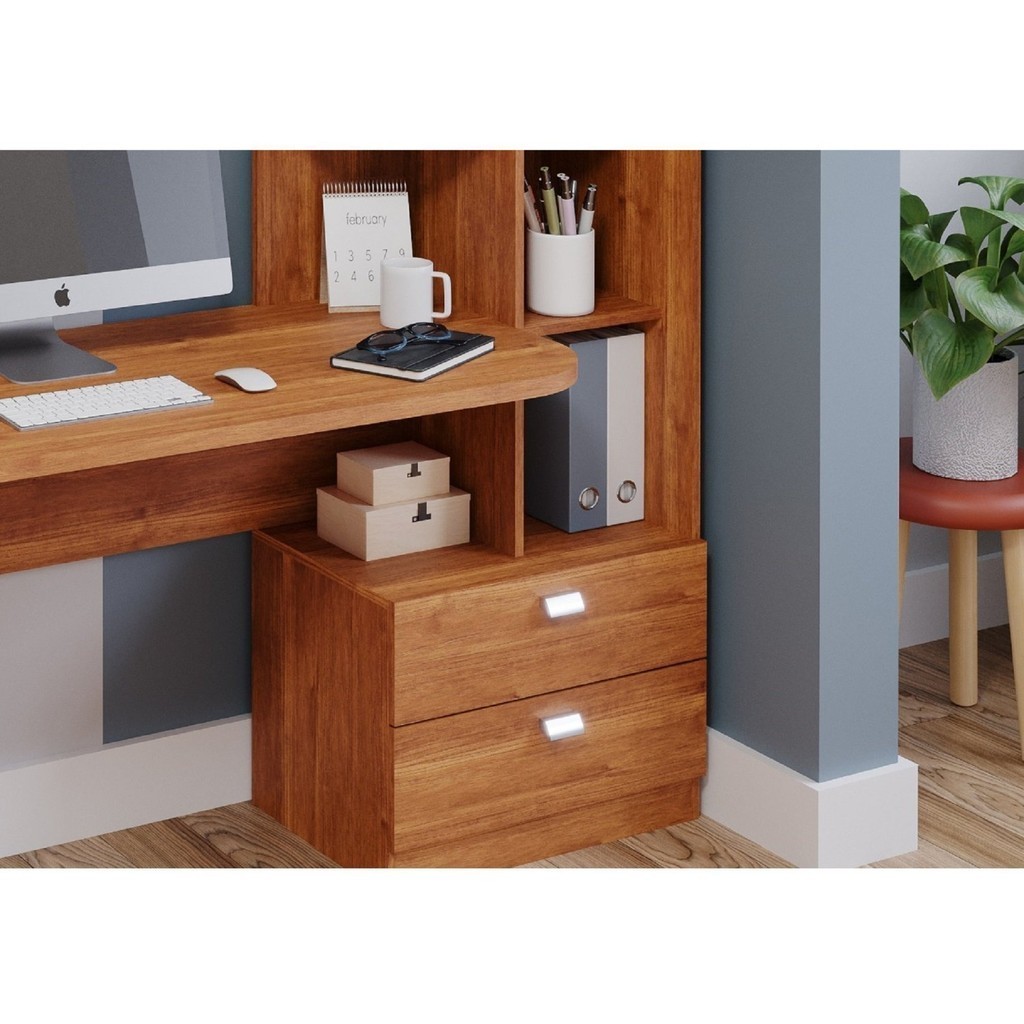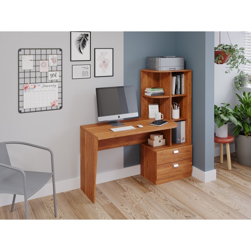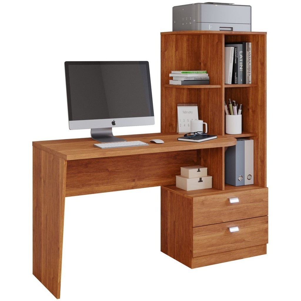 Escrivaninha Mesa Escritório com 138cm Estante Elisa Cinamomo
