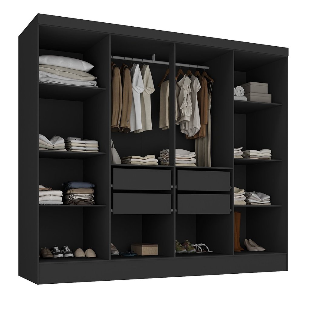 Closet Casal 100% MDF 4 Gavetas Jatobá Yescasa Preto