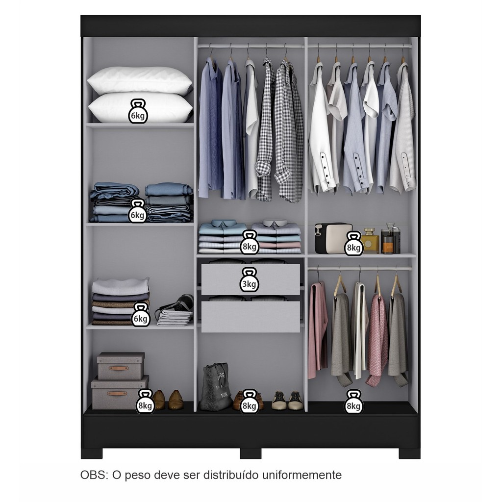 Guarda Roupa Casal 3 Portas Atenas Yescasa Preto