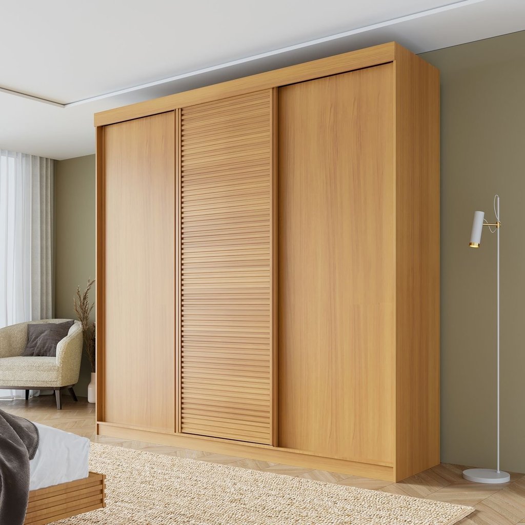 Guarda-roupa Casal 3 Portas de Correr Samambaia CabeCasa MadeiraOriginals Carvalho