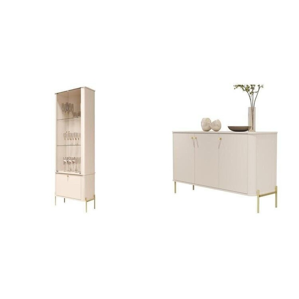 Cristaleira e Buffet Tucupí com Puxador e Pés em Metal