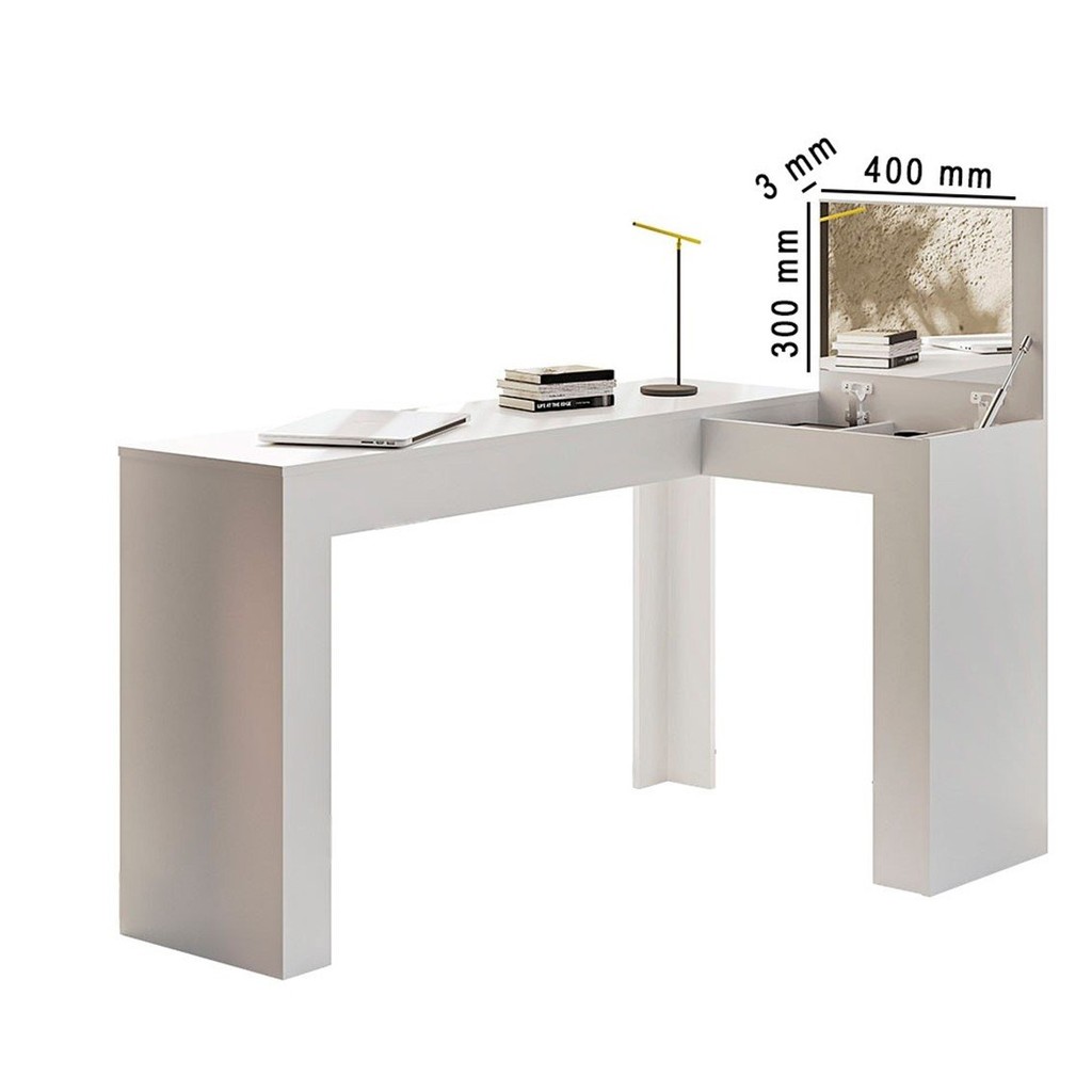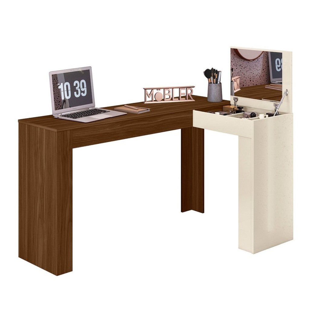 Escrivaninha Mesa Escritório Penteadeira em L Porta Objetos 135x82cm Jade Freijó/Off White