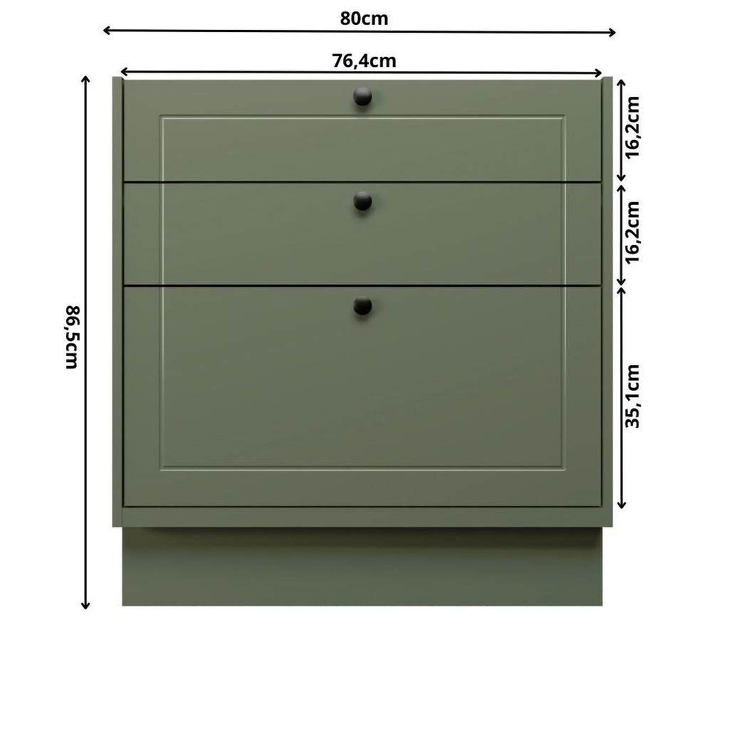 Balcão de Cozinha 80cm 3 Gavetas Sevilha Verde