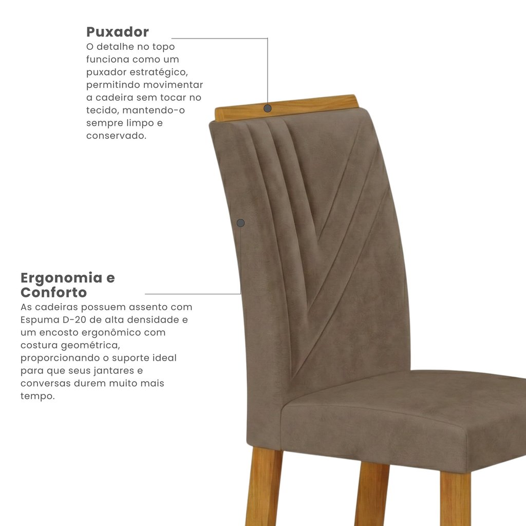 Conjunto Mesa de Jantar 4 Cadeiras Estofadas Veludo 120cm Miami MDF/MDP Marrom Yescasa Bege/Off White/Freijó