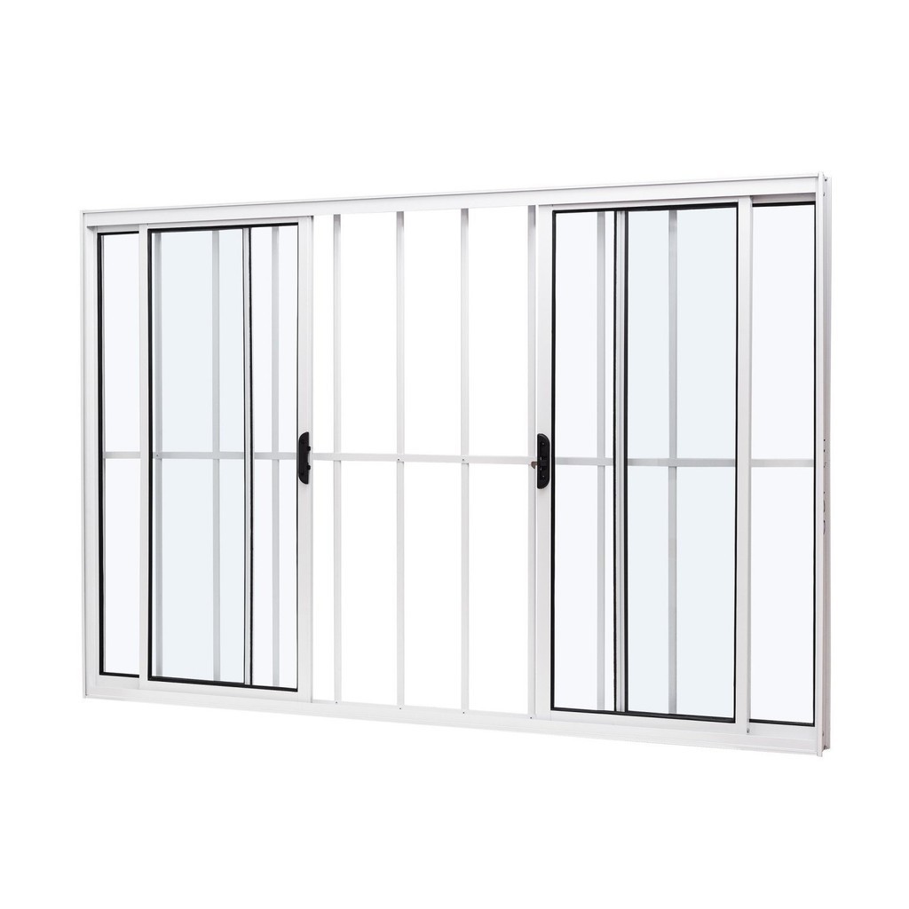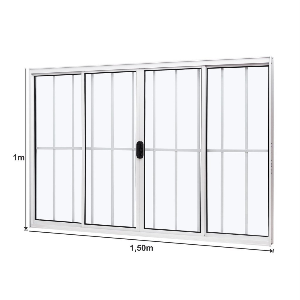 Janela de Aluminio de Correr Central 100x150cm 4 Folhas com Grade e Vidro Liso Ultra Ramassol