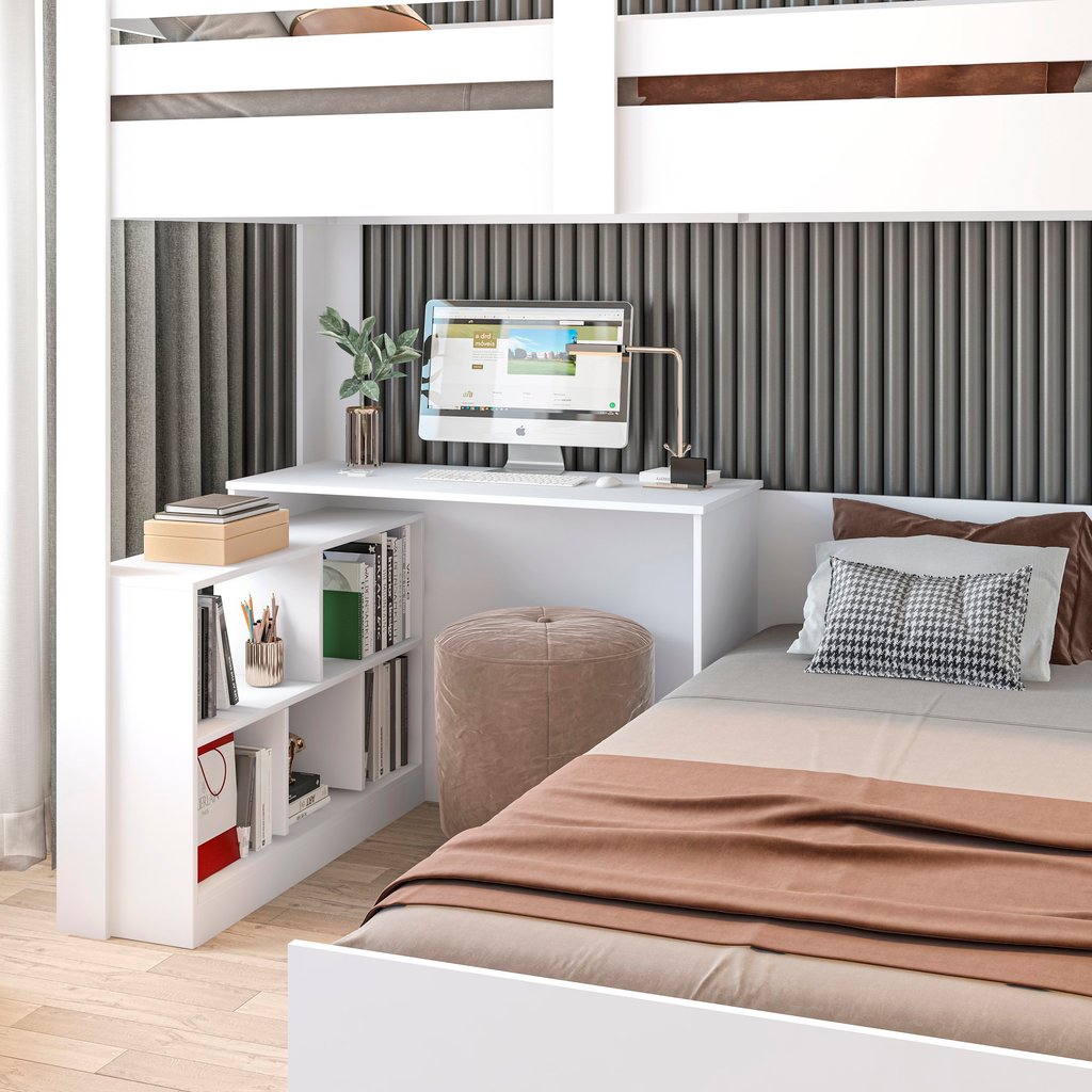 Beliche Multifuncional Solteiro Adulto com Escrivaninha Star Office Casatema MadeiraOriginals