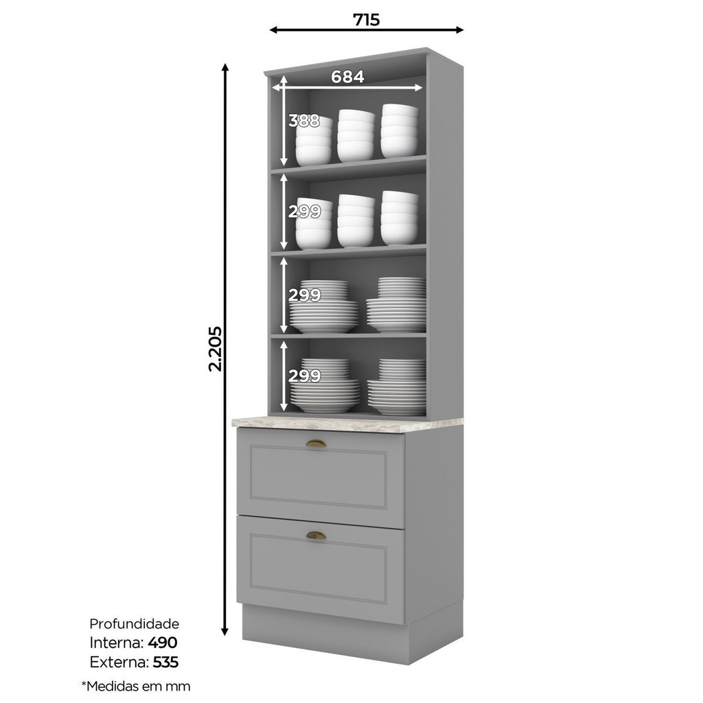 Paneleiro 2 Portas 2 Gavetas Emily Espresso Móveis Cinza