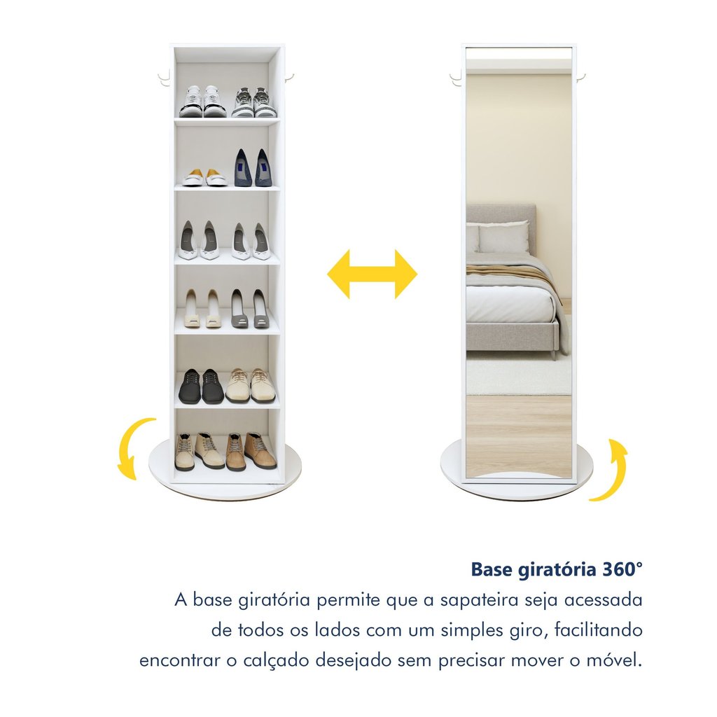 Sapateira Giratória com Porta de Espelho para 11 a 20 Pares Esthela Branco