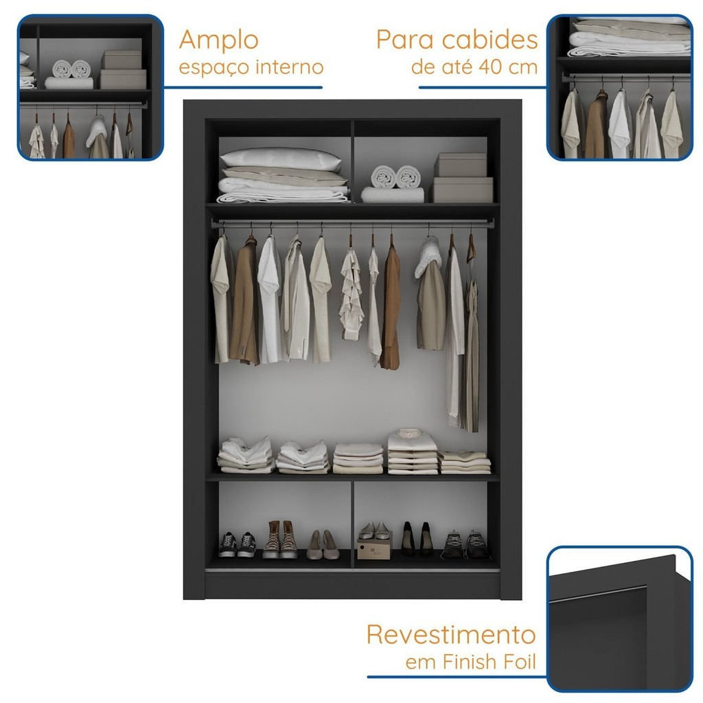 Guarda-roupa Solteiro 2 Portas com Espelho Ágata Yescasa Preto