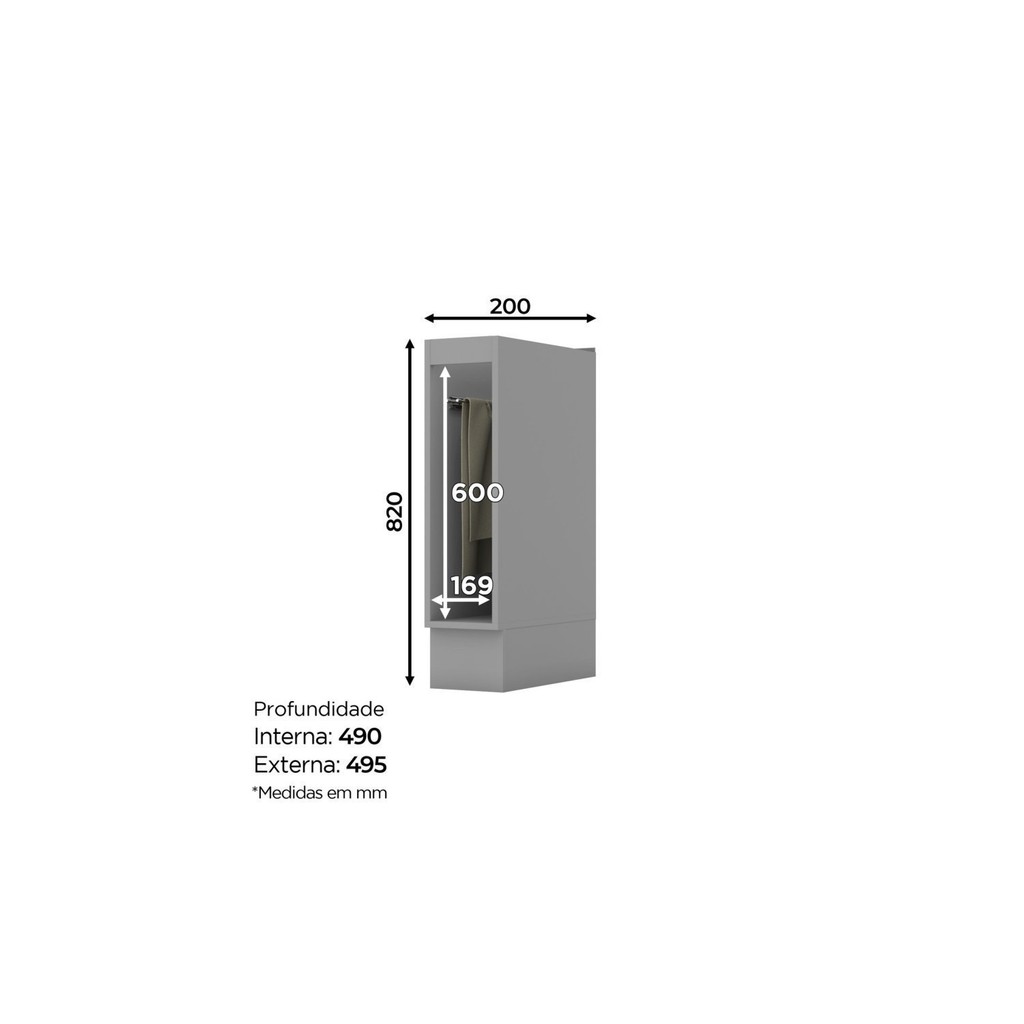 Balcão Porta Toalha para Cozinha 20cm Emily Espresso Móveis Cinza