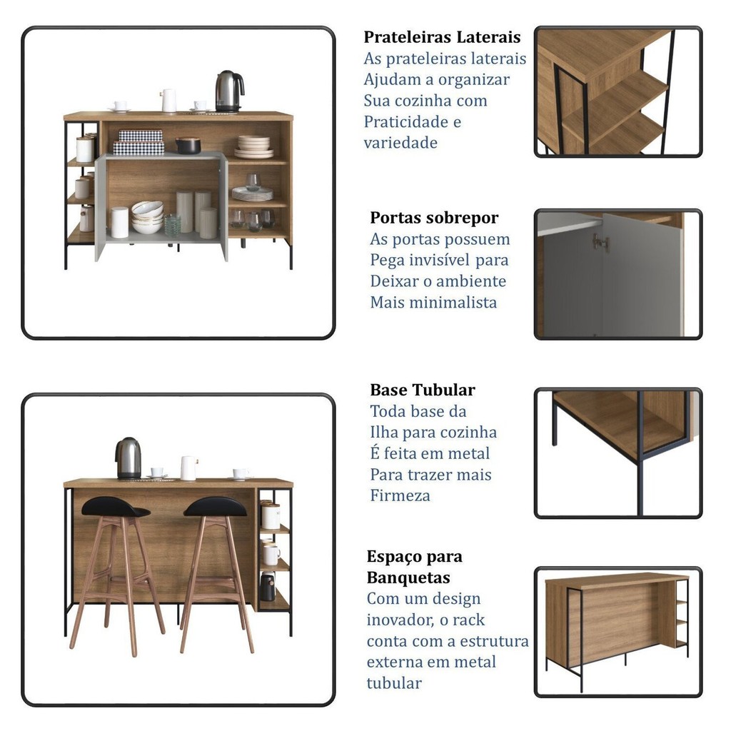 Mesa Bancada Gourmet Estilo Industrial 131cm com Armario 2 Portas Arenas