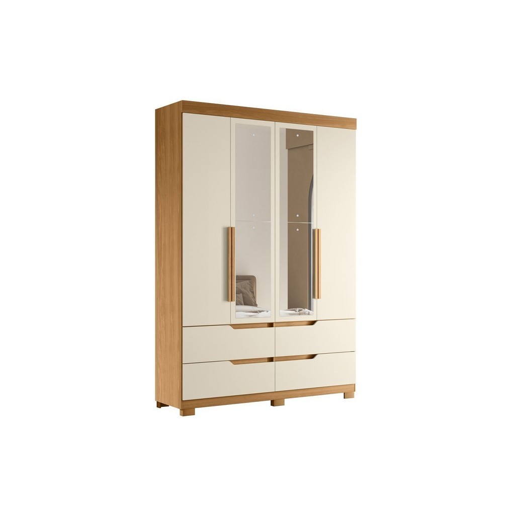 Guarda Roupa Solteiro com Espelho 4 Portas 4 Gavetas Doble Cinamomo/Off White