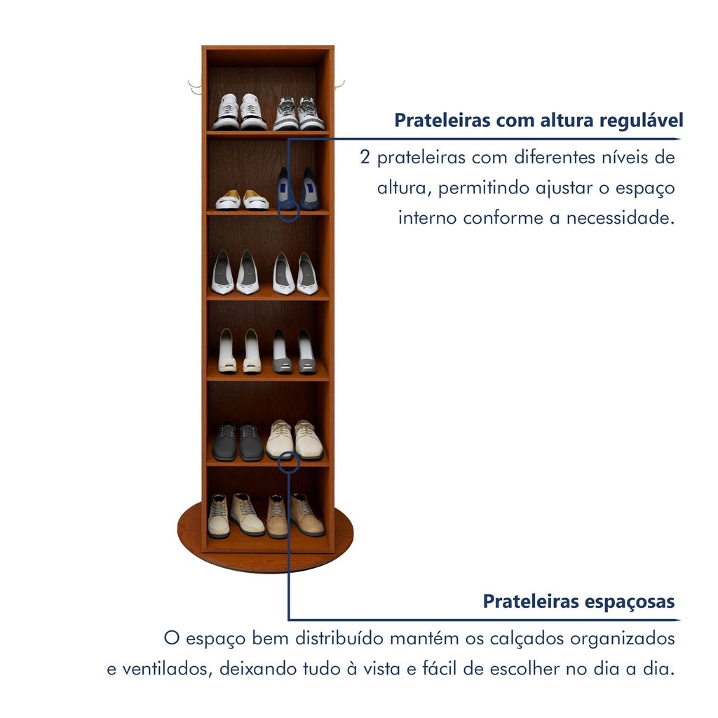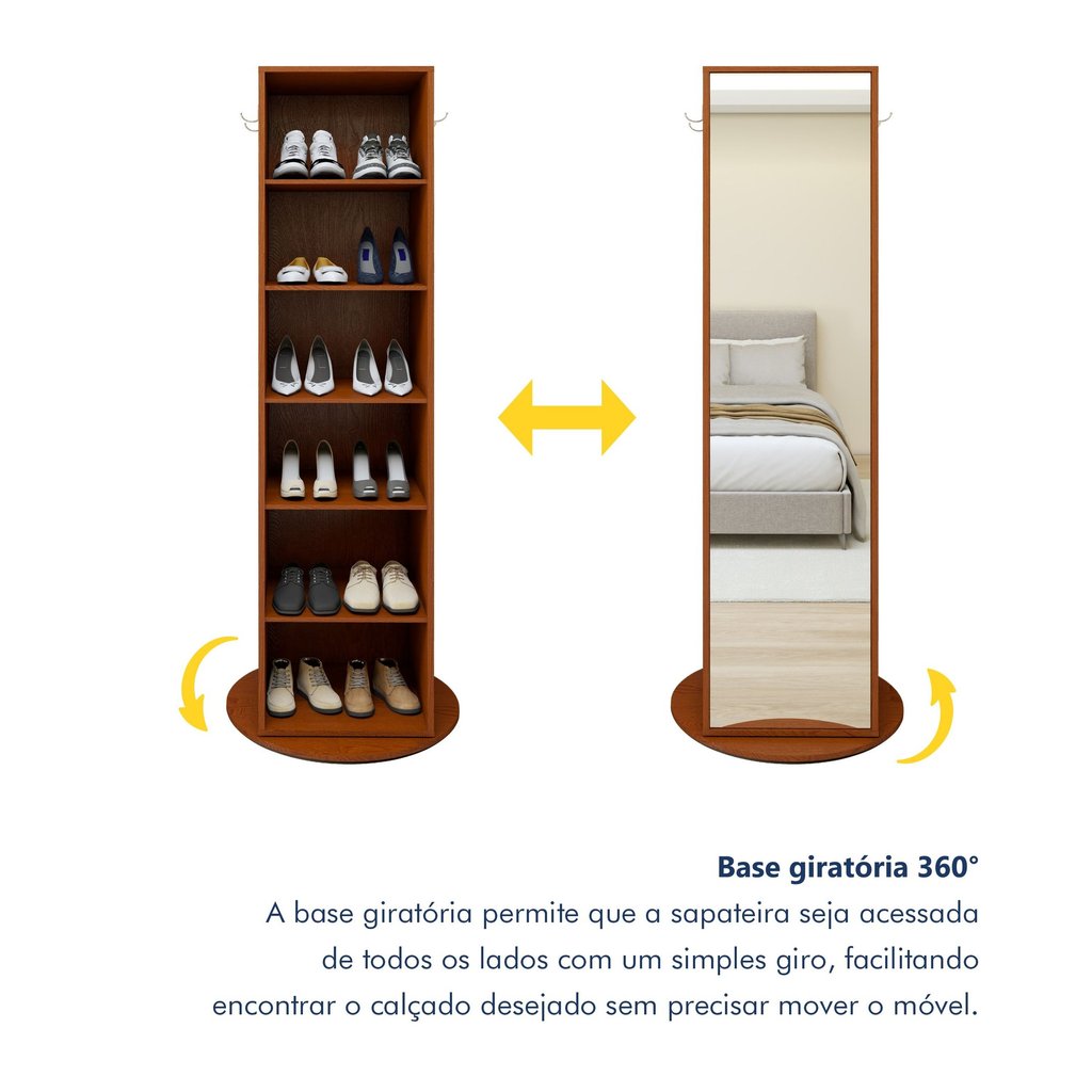 Sapateira Giratória com Porta de Espelho para 11 a 20 Pares Esthela Frassino