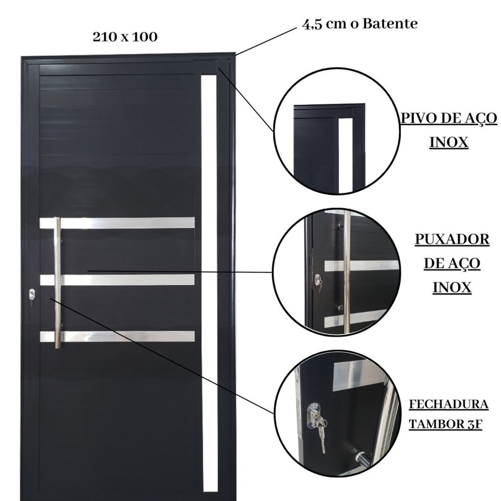 Porta Pivotante de Alumínio 210 x 100cm com Friso e Vidro Veneza Esquadrias Bergamo Preto