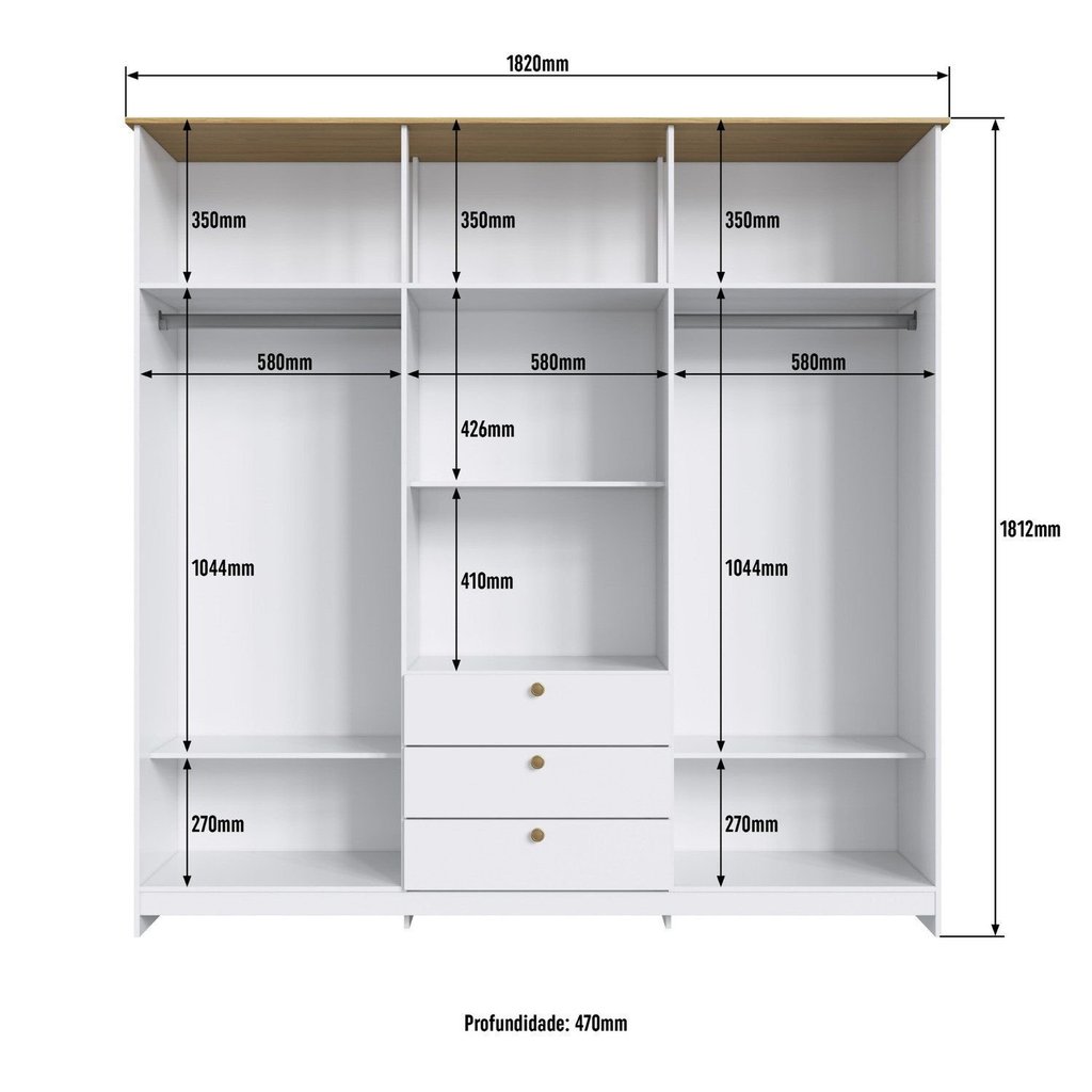 Guarda-roupa 6 Portas e 3 Gavetas Americano 6 Portas