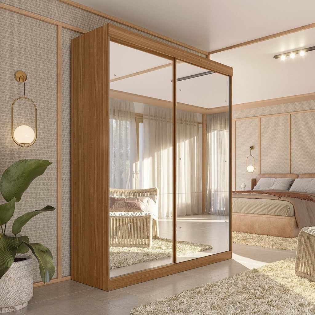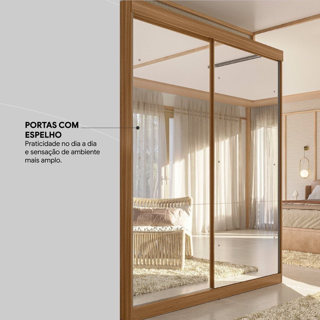 Guarda-roupa Solteiro 2 Portas de Correr 2 Gavetas e 6 Espelhos Peônia Yescasa Amêndola Touch