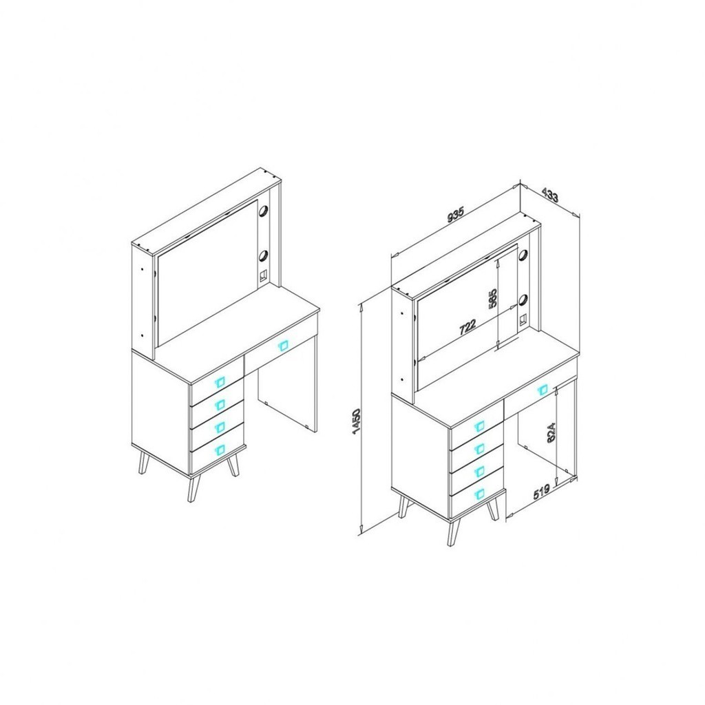 Penteadeira 5 Gavetas com Iluminação Tomada Embutida