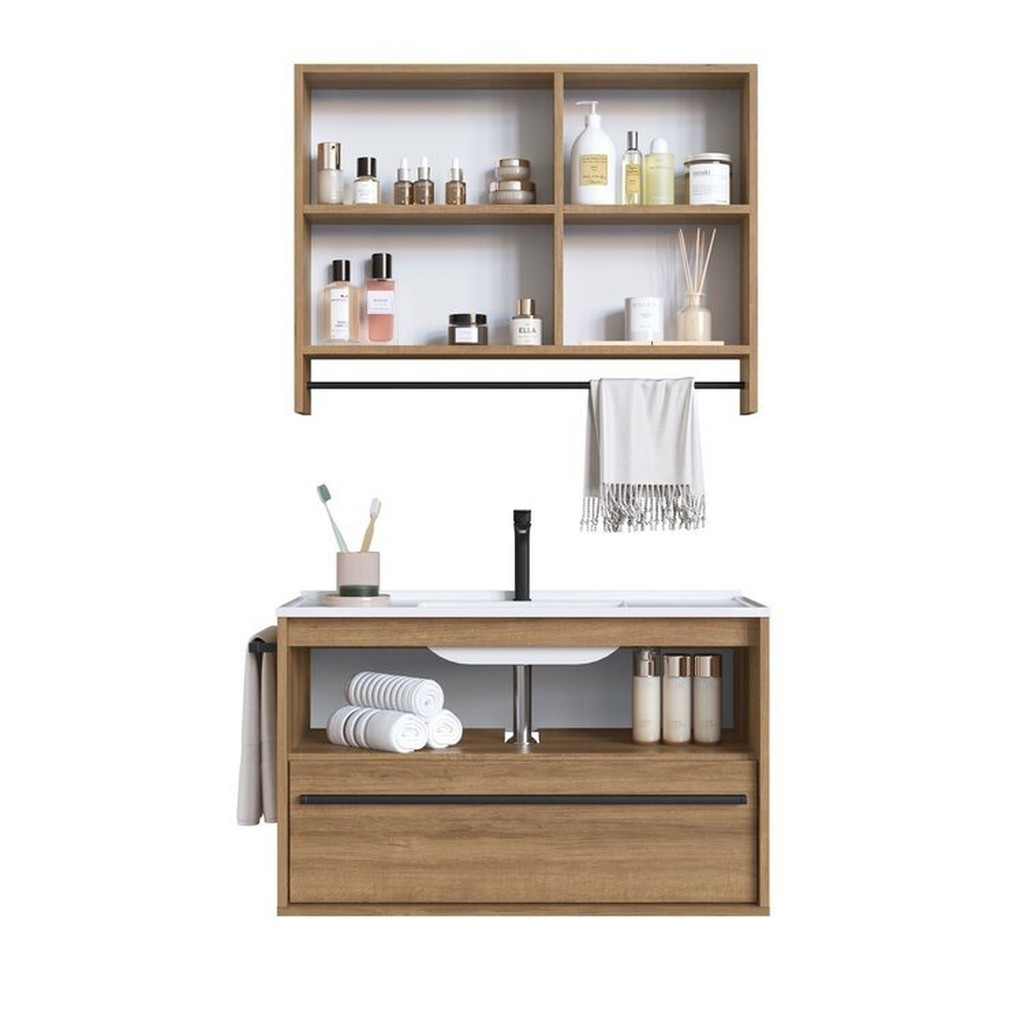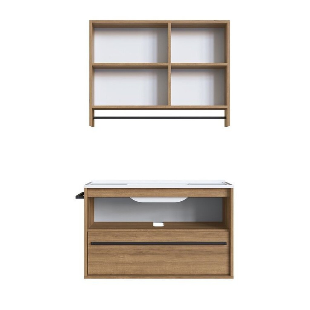 Conjunto para Banheiro Gabinete Suspenso 80cm com Toalheiro Lavatorio e Espelheira Cj8030.20 Mel
