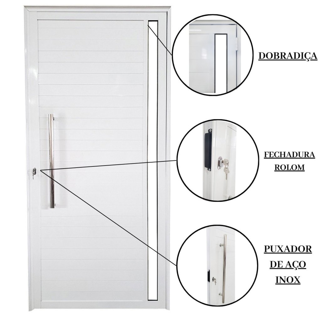 Porta Lambril de Alumínio 210 x 90cm com Visor Linha Veneza Esquadrias Bergamo Abertura Direita