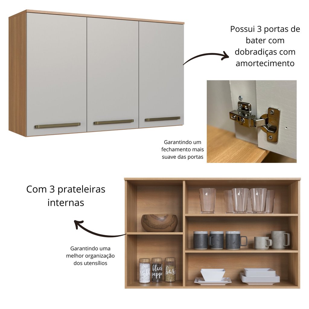Armário Aéreo 120cm 3 Portas com Prateleira Interna Isabelle Freijó/Arenas